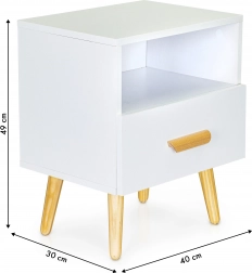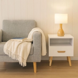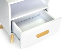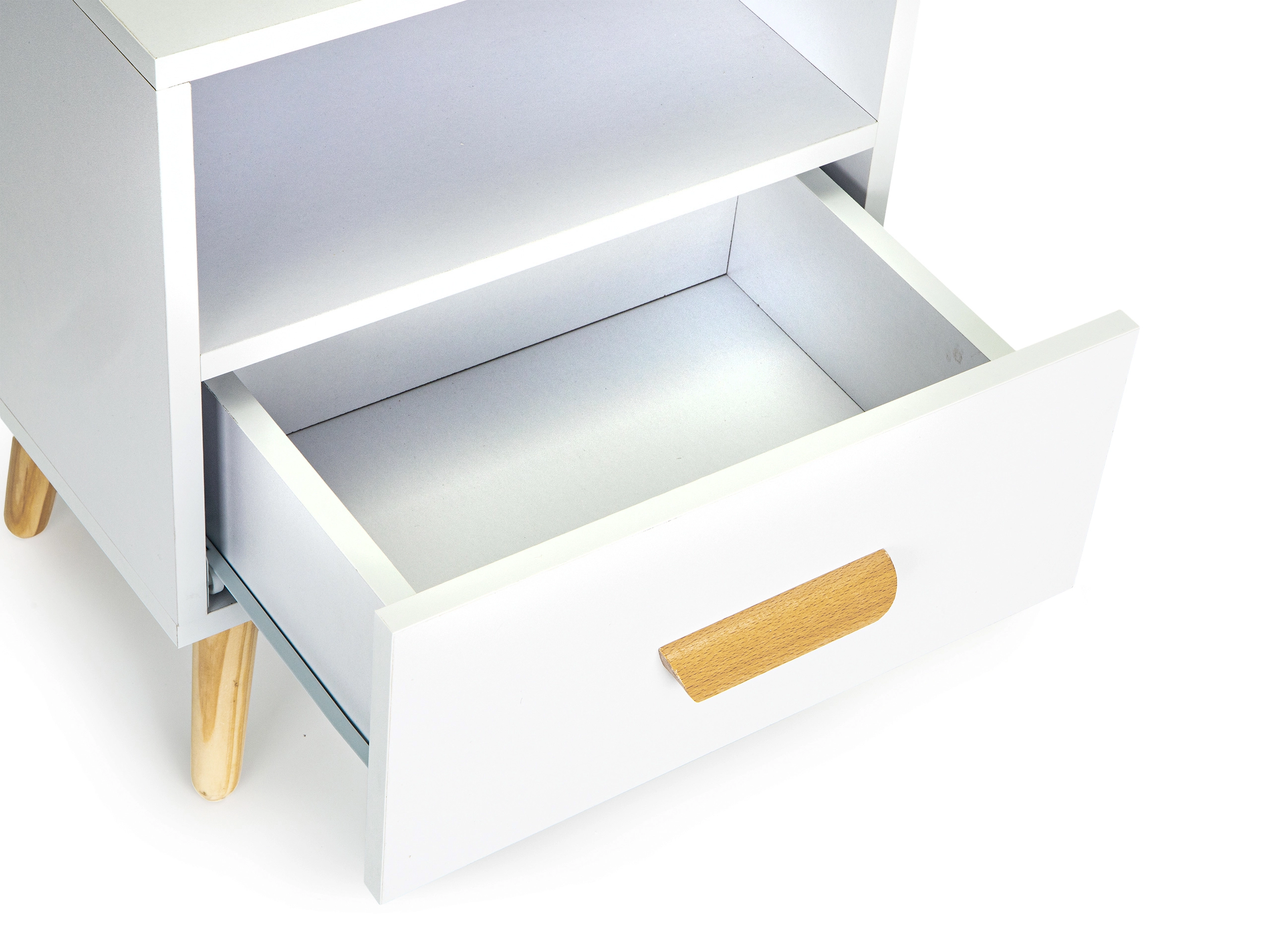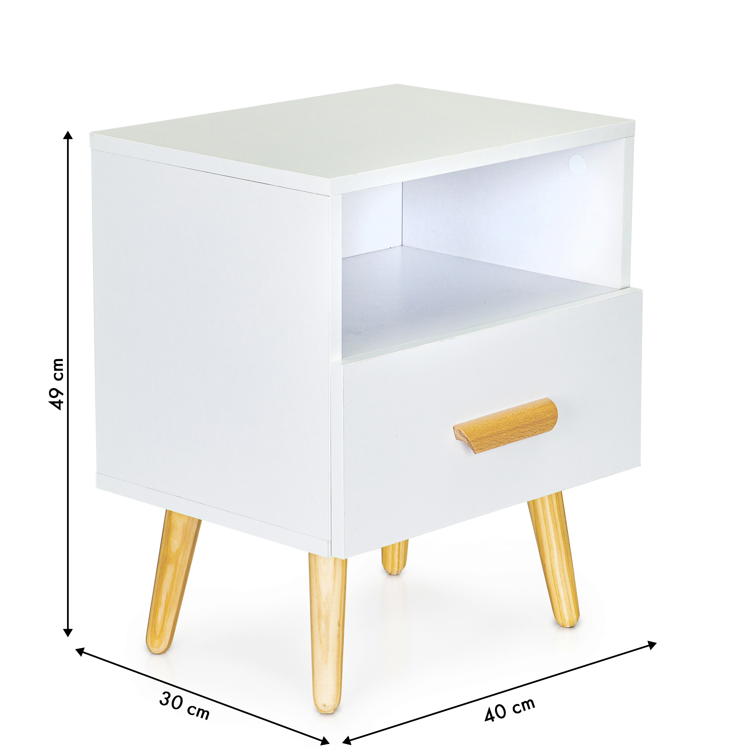 Komplet 2 nočnih omaric MODERNHOME je idealna izbira za spalnico ali dnevno sobo. Minimalističen dizajn v beli barvi se zlahka ujema z modernim in skandinavskim interierjem, medtem ko kompaktna velikost prihrani prostor in vseeno nudi dovolj površine za svetilko, knjigo ali telefon.