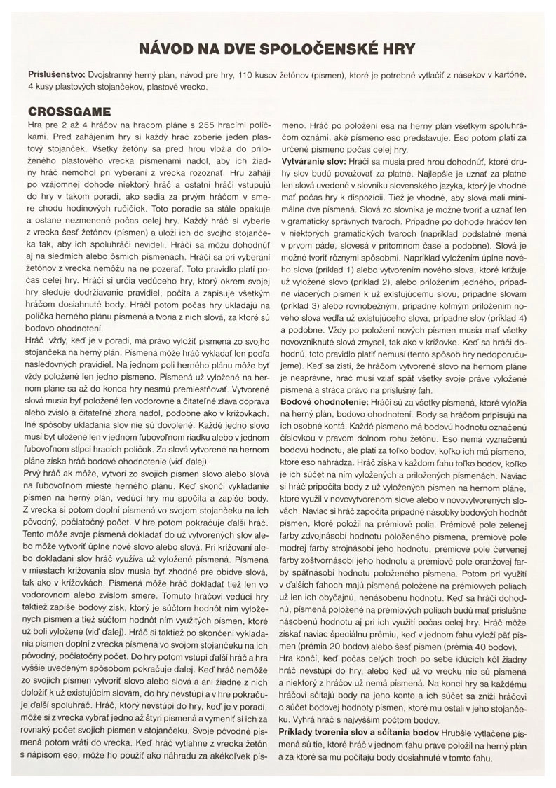 Crossgame prinaša dvojni odmerek zabave v enem paketu: dve izvirni besedni igri iz sveta neskončnih križank, ki izzoveta možgane in zabavata vso družino. Igralci iz črk sestavljajo besede, taktično jih postavljajo in tekmujejo za čim višji rezultat.