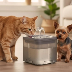 Samodejna fontana za pse in mačke podpira redno pitje in boljšo hidracijo. Zahvaljujoč kroženju vode in aktivni filtraciji je voda vedno sveža in okusna. Tih tek okoli 40 dB ne moti gospodinjstva niti občutljivih živali.