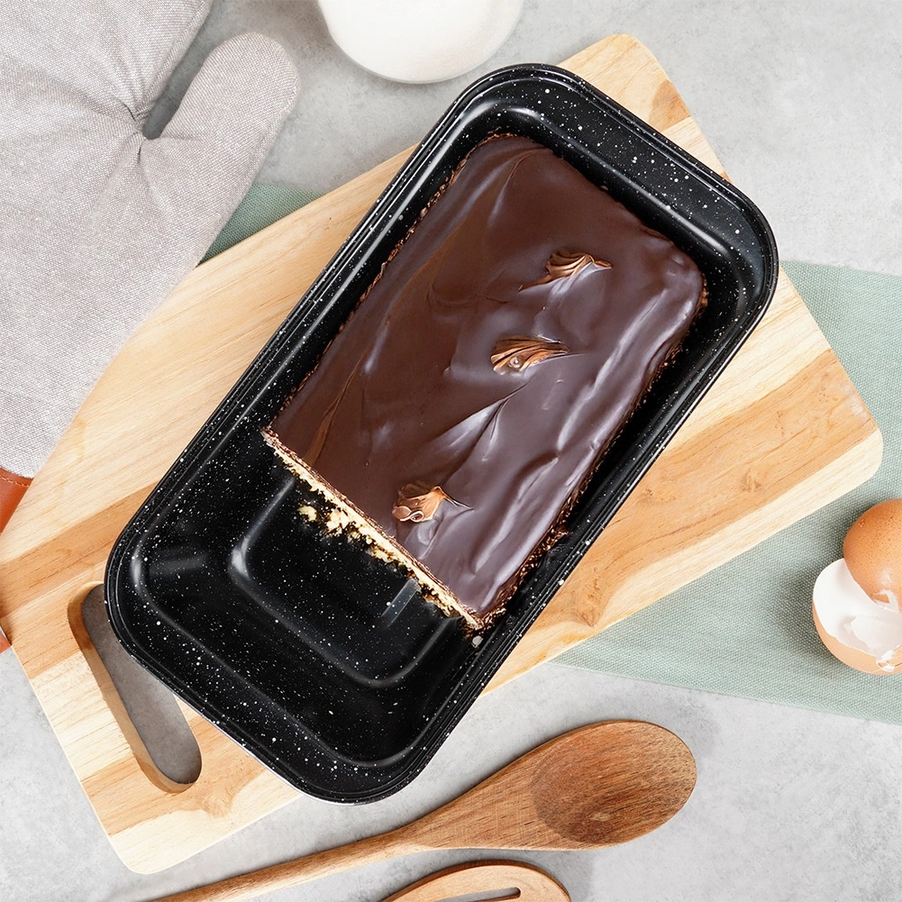 Ta pravokotni pekač iz kakovostnega ogljikovega jekla z granitno nelepljivo prevleko je idealen za domače pečenje kruha, keksov, biskvitov in paštet. Material zagotavlja hitro in enakomerno segrevanje, zato bodo vaši izdelki vedno lepo in enakomerno prepečeni.