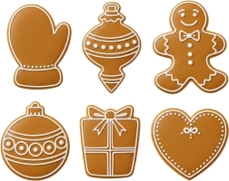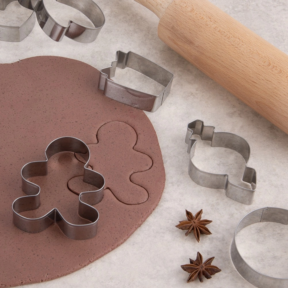 Ta set vsebuje šest priljubljenih motivov – rokavico, podolgovat okrasek, medenjakovo figurico, okroglo bunkico, darilo in srce. Modelčki iz kakovostnega nerjavečega jekla so čvrsti, trpežni in ustvarjajo natančne linije brez cefranja testa. Zahvaljujoč gladkim rezalnim robovom zlahka izrežete enakomerne oblike za popolno videti piškote.