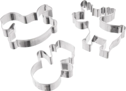 Komplet treh modelčkov v priljubljenih zimskih motivih je nepogrešljiv pomočnik za domačo in praznično peko. Iz nerjavnega jekla za čiste in natančne oblike – idealno za testa, medenjake in fondant. Enostavno vzdrževanje in možnost pomivanja v pomivalnem stroju prihrani čas v kuhinji.