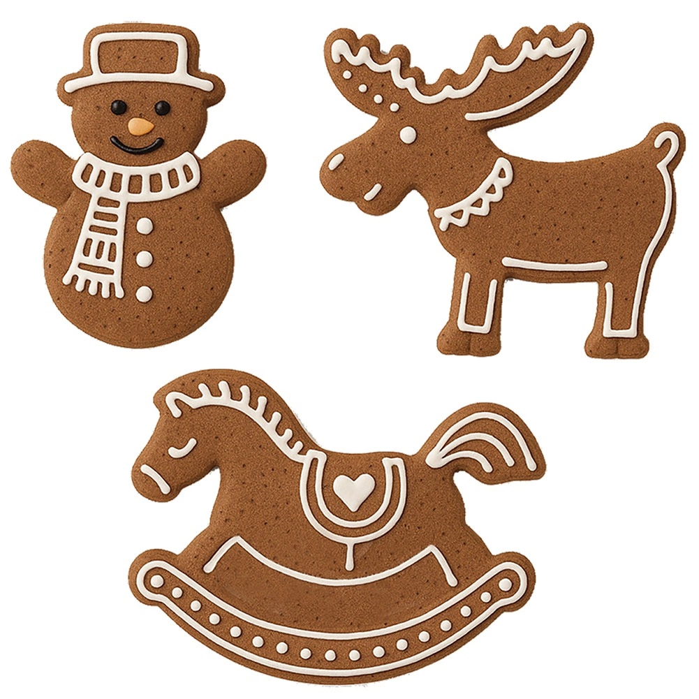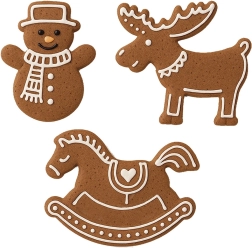 Snežak, gugalni konjiček in jelen pokrijejo večino priljubljenih božičnih motivov. Idealno za medenjake in maslene piškote.