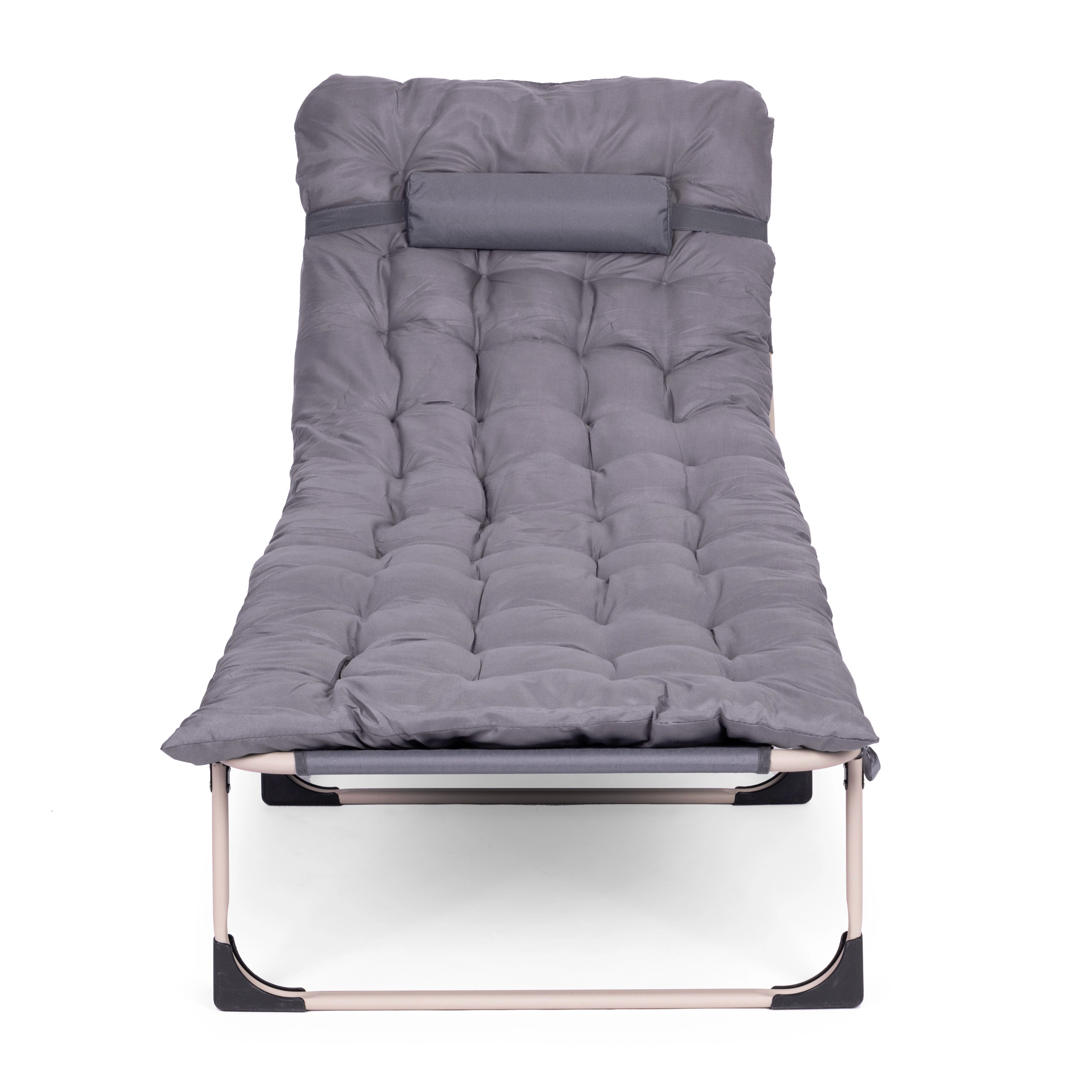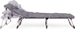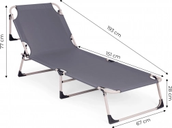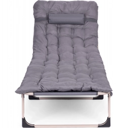 Praktičen in udoben ležalnik za počitek kjerkoli – ob vodi, na vrtu ali na balkonu. Zahvaljujoč debelemu oblazinjenju vzmetnice in integriranemu vzglavniku nudi celodnevno udobje, medtem ko jeklen okvir s prašnim lakiranjem zagotavlja dolgo življenjsko dobo in stabilnost.