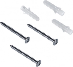 Zaščita IP44 varuje pred brizgajočo vodo. V paketu so priloženi vložki in vijaki za hitro namestitev na strop ali steno.