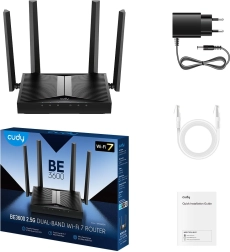 Cudy WR3600H je sodoben domači in pisarniški usmerjevalnik, pripravljen na visoke zahteve multimedije, iger in dela od doma. Zahvaljujoč podpori 802.11be/ax/ac/n/g/b/a je združljiv s starejšimi napravami, hkrati pa izkorišča prednosti Wi‑Fi 7 – višjo prepustnost, nižjo latenco in boljšo zanesljivost. V pasu 5 GHz doseže do 2882 Mb/s, v pasu 2,4 GHz do 688 Mb/s.