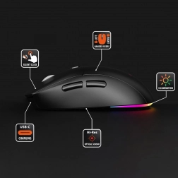 Zahvaljujoč tihim glavnim tipkam ne motite okolice niti pozno ponoči. Optični senzor z hitro izbiro DPI 1200/2400/3200 prožno preklaplja med fino grafiko in hitrimi reakcijami v igrah. RGB efekt Rainbow vašemu setu doda slog.