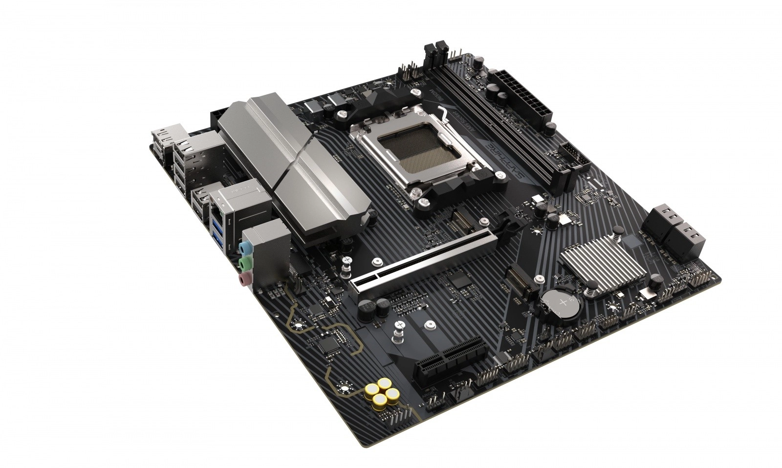 Kompaktna mATX osnovna plošča Sapphire B650M‑E za procesorje AMD Ryzen z ležiščem AM5 ponuja moderno opremo za igralne in zmogljive sestave. Prinaša PCIe 5.0 za M.2 SSD, grafični režo PCIe 4.0 x16, hitro DDR5 (dvokanalno, do 7600 MHz OC) in stabilno napajanje zahvaljujoč 6+2+1 fazam VRM z hladilniki. Ne manjka učinkovito hlajenje VRM, M.2 in čipovja ter pregledne nastavitve v Sapphire CORE BIOS.