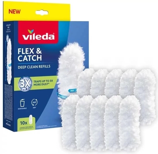 Nadomestni nastavki Flex & Catch učinkovito privlačijo in zadržujejo prah na vlaknih, namesto da bi ga le razpihali. Idealni so za čiščenje elektronike, žaluzij in težko dostopnih kotičkov. Zasnova 360° z vlakni po celotnem ovoju zagotavlja, da prah izgine z vseh strani.