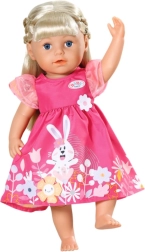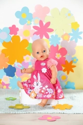 Vesel potisk cvetlic in igrivega zajčka punčki BABY BORN doda edinstven slog ter spodbuja domišljijsko igro.