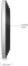Tanka, okrogla zasnova je idealna za stropno in stensko montažo. LED obroč jasno prikazuje stanje omrežja, ne da bi kvaril videz notranjosti.