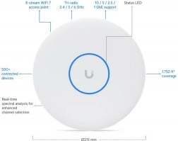 Uživajte v najnovejšem standardu brezžičnih omrežij z dostopno točko Wi‑Fi 7 U7 Pro XGS. Zahvaljujoč 8 prostorskim tokom, učinkovitemu upravljanju več naprav in optimiziranemu oblikovanju signala zagotavlja vrhunsko zmogljivost v gosto poseljenih okoljih. Moderna okrogla zasnova z LED indikacijo stanj se zlije z vsakim interierjem.