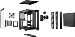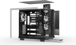 Podpora radiatorjem do 360 mm, ATX ploščam in GPU do približno 400 mm. Dva položaja napajalnika in združljivost s ploščami z zadnjimi konektorji (ASUS BTF, MSI Project Zero, Gigabyte Project Stealth).