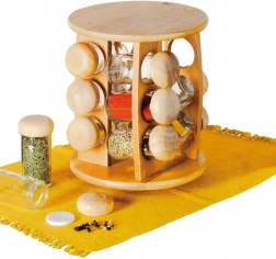 Stojalo navduši s klasičnim dizajnom, ki se prilega vsaki kuhinji, obenem pa prihrani prostor na delovni površini. Steklene posodice (brez pokrovčkov) lahko pomivate v pomivalnem stroju, kar olajša vzdrževanje. Komplet je idealen tudi kot praktično darilo za vselitev ali ljubitelje kuhanja. Začimbe niso vključene.