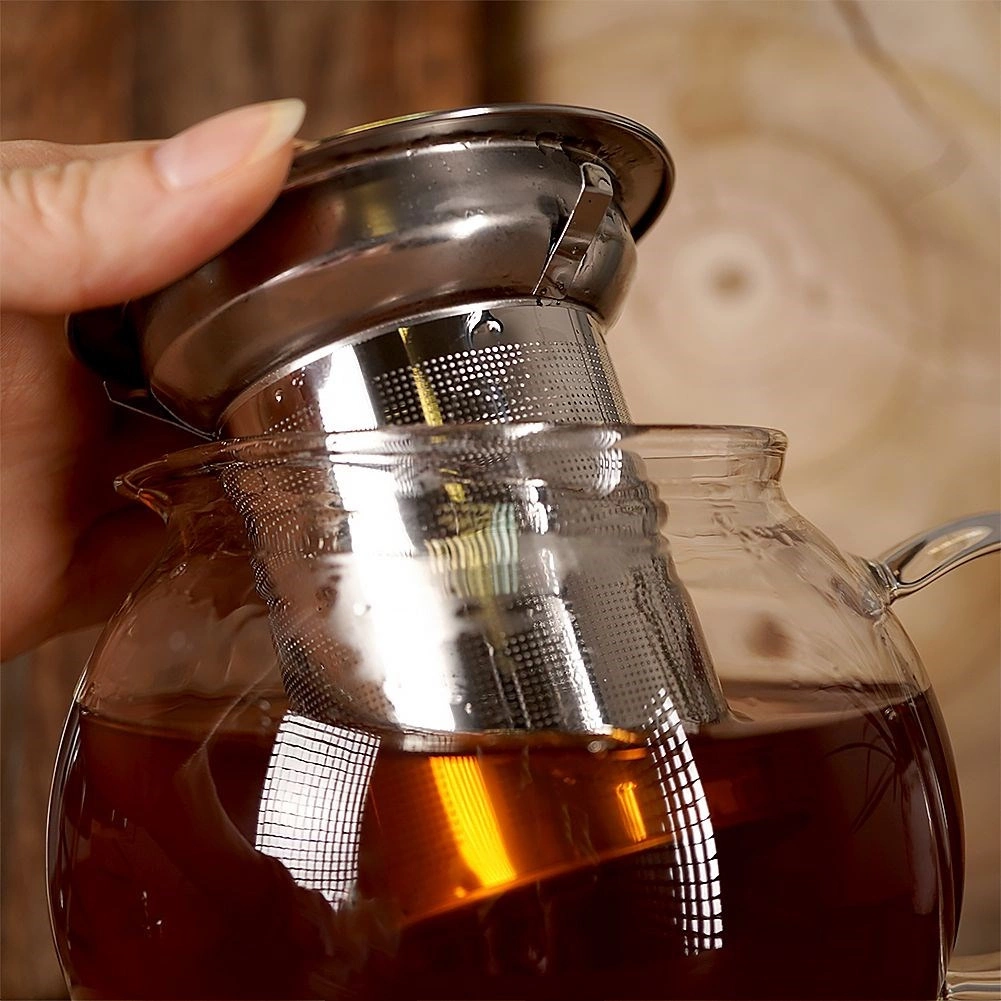 Odkrijte eleganten način, kako uživati svoj najljubši čaj brez lističev v skodelici. Čajnica iz prozornega borosilikatnega stekla omogoča nadzor nad jakostjo napitka, medtem ko fino nerjaveče cedilo varno zadrži čajne lističe v notranjosti. Zahvaljujoč volumnu 800 ml pripravite idealno porcijo zase in za goste.