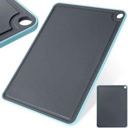 Praktična kuhinjska deska za rezanje z merami 35,5 × 26 cm za vsakodnevno pripravo hrane. Ponuja odporno plastično površino, nedrseč rob, kanalček za sokove proti neredu in odprtino za obešanje. Material ne vpija vonjav niti tekočin in je enostaven za čiščenje, tudi v pomivalnem stroju.