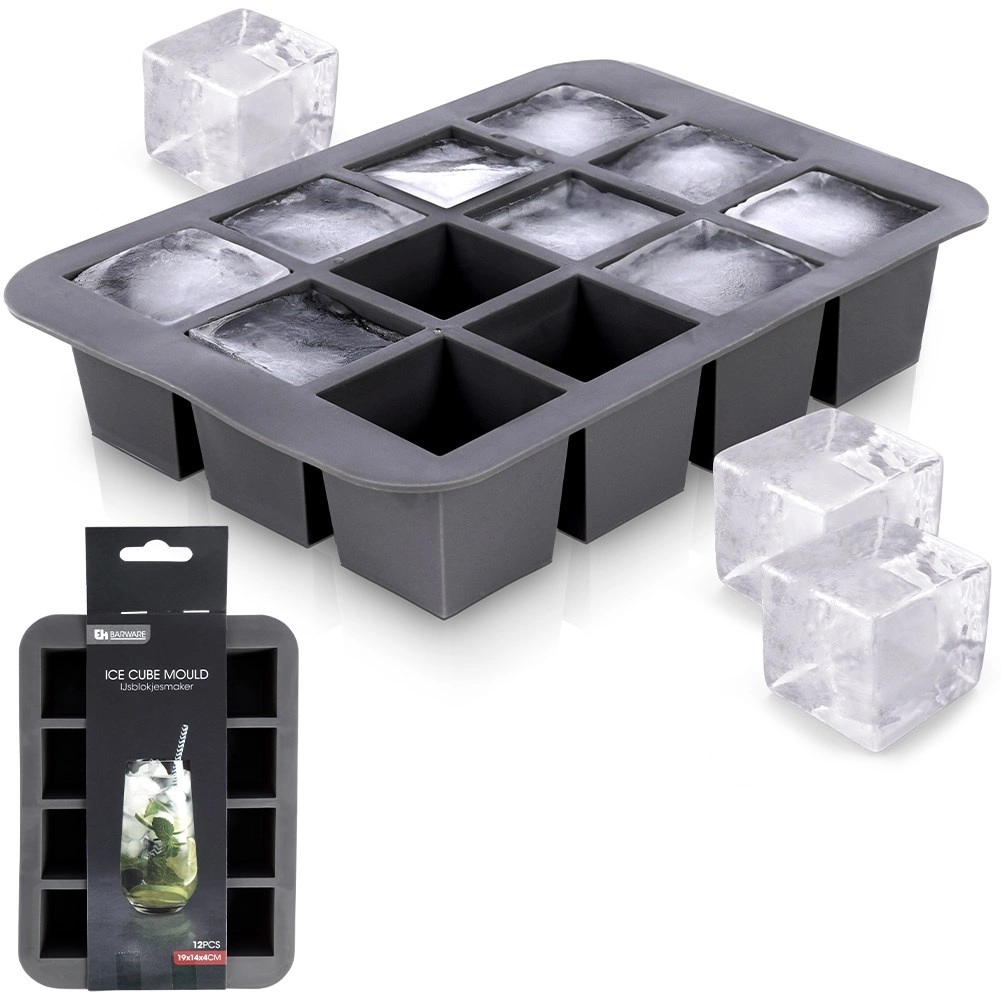 Praktičen silikonski model za led ustvari 12 velikih kvadratnih kock velikosti 3,5 × 3,5 × 3,5 cm. Zahvaljujoč fleksibilnemu silikonu kocke zlahka odstranite, počasneje se talijo in ohranjajo vaše napitke dlje časa hladne brez nepotrebnega redčenja. Model je enostaven za čiščenje in primeren za pomivalni stroj.