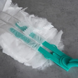 Zamenljive glave za prašno krtačo zagotavljajo vedno čist in učinkovit pospravek. Zahvaljujoč antistatičnim vlaknom zlahka ujamejo fin prah in dlake hišnih ljubljenčkov ter jih zadržijo na površini, da se ne dvigujejo nazaj v zrak. Velika čistilna površina 16,5 × 12 cm pospeši delo tudi na večjih površinah.