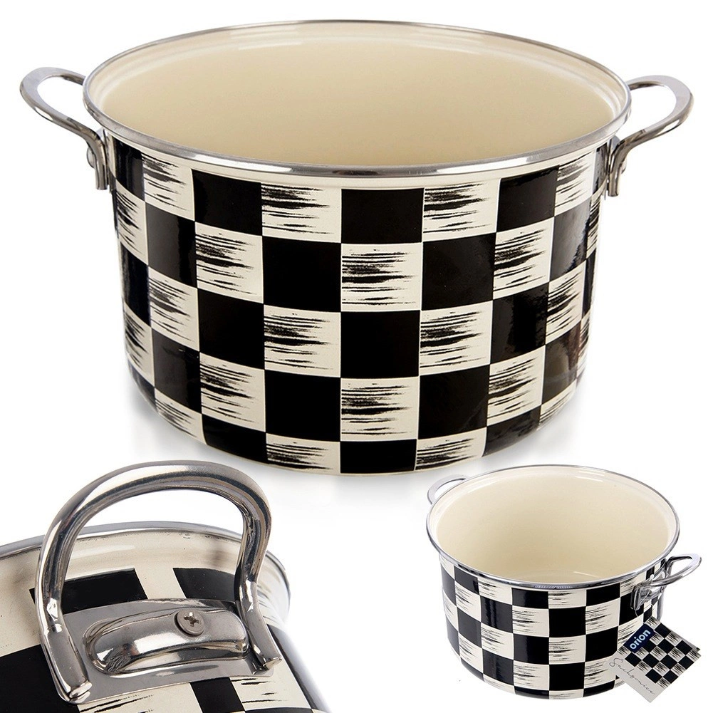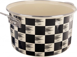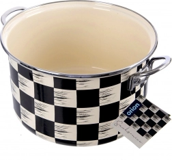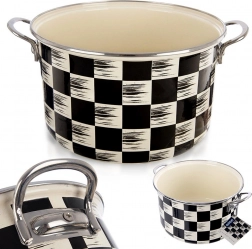 Emajliran lonec v retro slogu združuje odpornost, univerzalno uporabo in preprosto vzdrževanje. Zunanji črno-bež karo dekor kuhinji doda poseben videz, notranja bež površina je gladka in higienska. Emajl je neškodljiv za zdravje in primeren tudi za alergike.