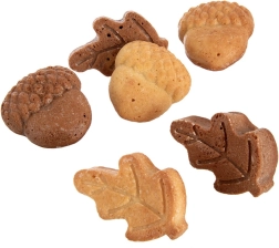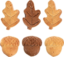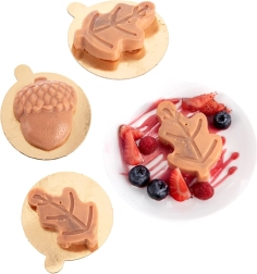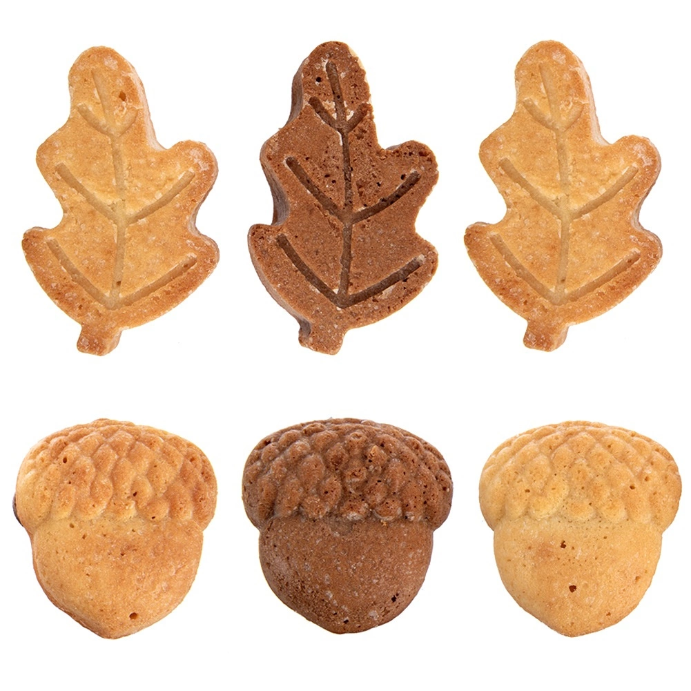 Šest votlin v obliki listov in želodov ustvari dekorativne mini sladice z ostrimi konturami in gladko površino, ki očarajo na prvi pogled.