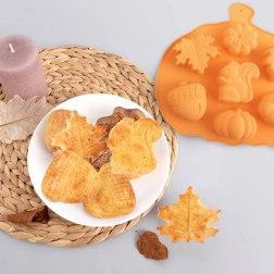 Ta kakovosten silikonski pekač z motivi listov, buče, želoda in veverice doda vašim piškotom, mafinom ali pralinam privlačen jesenski videz. Dimenzije pekača 26 × 25 × 3 cm in vdolbinice približno 6,5 × 6 cm zagotavljajo lepo oblikovane in enakomerno pečene sladice.