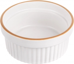 Ta okrogla pekač̌na skodelica (kokotka) iz kakovostne keramike je odlična za pripravo sladkih in slanih porcij: od mini narastkov in zelenjave do suše ali lava tortic. Zaradi klasične bele izvedbe z diskretnim rjavim robom se odlično poda na vsako mizo in lepo sovpada z drugimi krožniki in skodelicami.