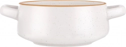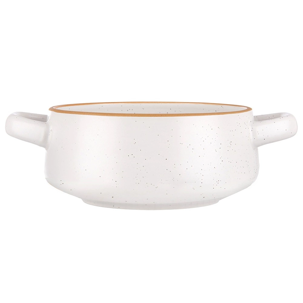 Kakovostna keramika v beli barvi s kontrastnim rjavim robom in pikčasto površino deluje moderno in hkrati brezčasno. Skodela je primerna za pomivalni stroj za hitro čiščenje in za mikrovalovno pečico za udobno pogrevanje. Odlično služi tudi za žitarice, jogurt, sadje, solate in različne prigrizke – praktičen pomočnik za vsakodnevno postrežbo.