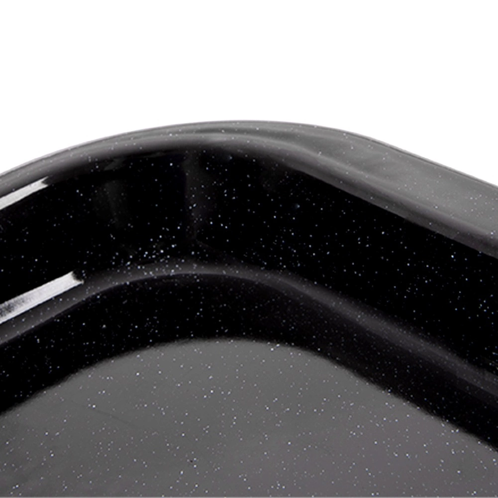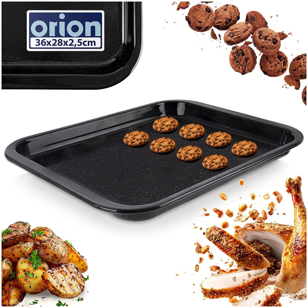 Zahvaljujoč rahlo povišanemu robu je idealen za peko poltekočih zmesi, zapečenih jedi, mesa, zelenjave in pice. Zunanje mere 36 × 28 × 2,5 cm (notranje približno 32 × 26 × 2 cm) ustrezajo običajnim električnim in plinskim pečicam.
