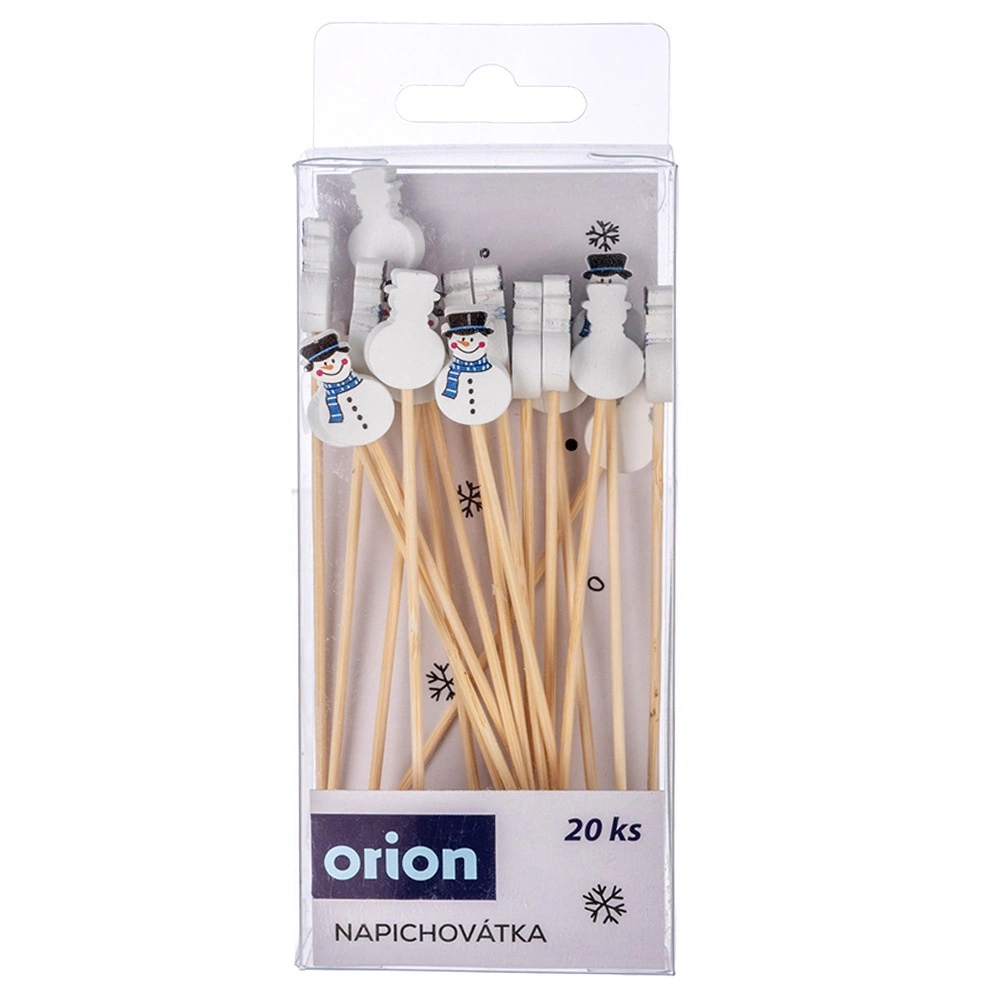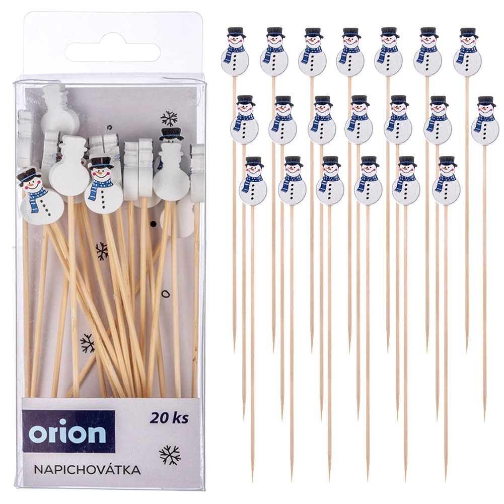 Naravni bambusovi paličici in leseni okraski so primerni za stik z živili. Snežakov topper doda mizi vesel in izrazit videz – idealno za domače zabave, peko na žaru in družinska praznovanja.