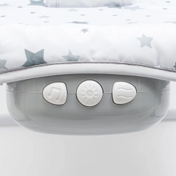 Vgrajena enota ponuja kombinacijo nežnih vibracij, pomirjujočih melodij in svetlobnih učinkov za prijetno uspavanje in miren počitek dojenčka.