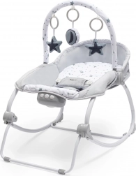 Ležalnik BABY MIX je zasnovan za najmlajše in večje otroke: kot ležalnik je primeren do 9 kg, kot stolček do 18 kg. Vgrajena enota prinaša vibracije, glasbo in svetlobne učinke, ki dojenčka pomirijo in zabavajo. Praktičen odstranljiv igralni lok s tremi igračami spodbuja vidno in tipno zaznavanje, medtem ko dvostopenjsko naslonjalo olajša prilagoditev za spanje in igro.