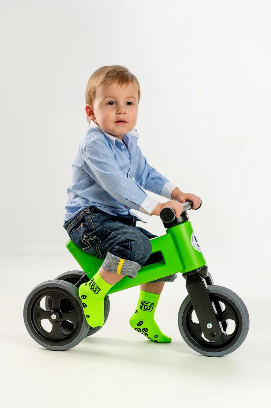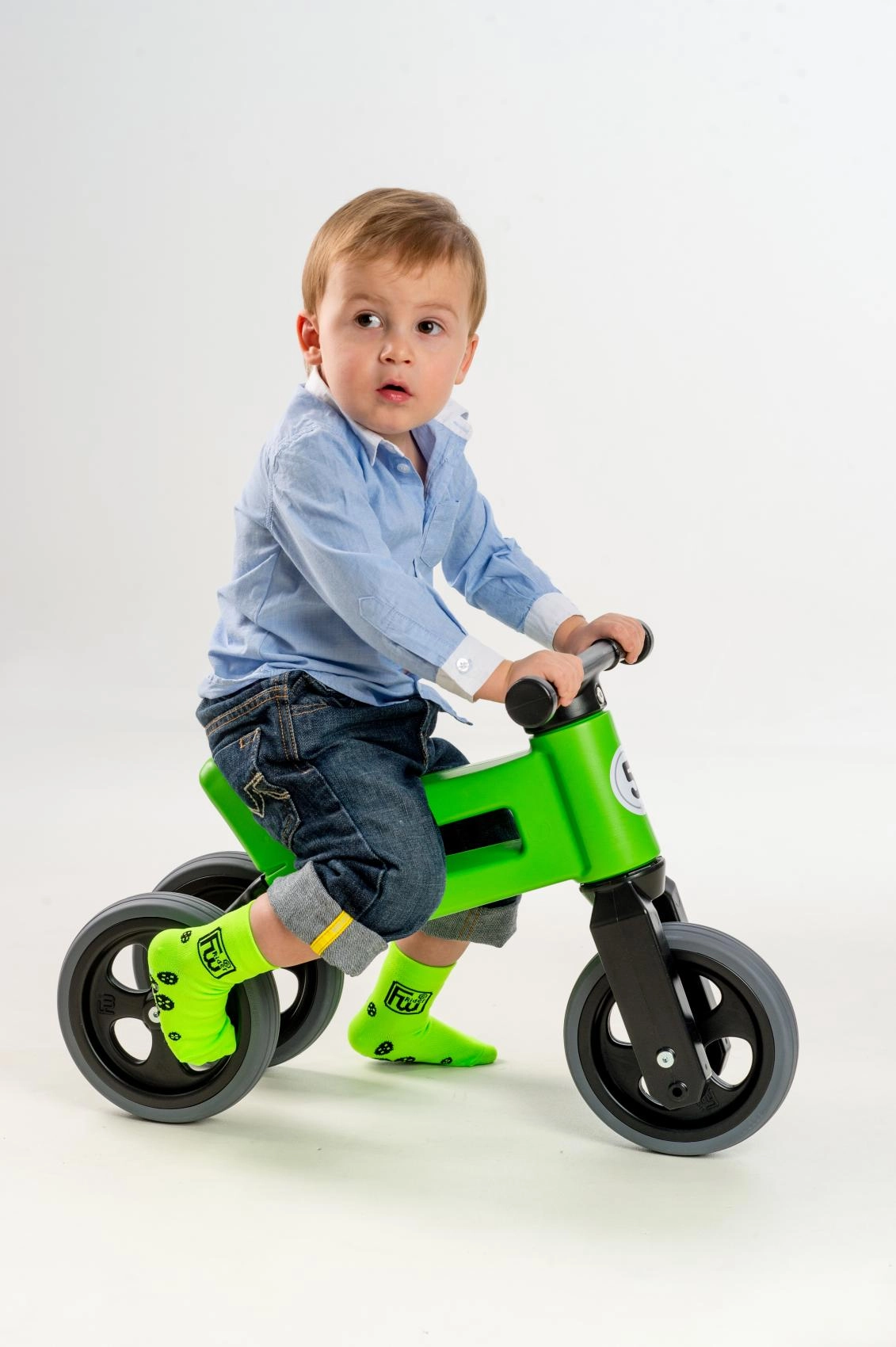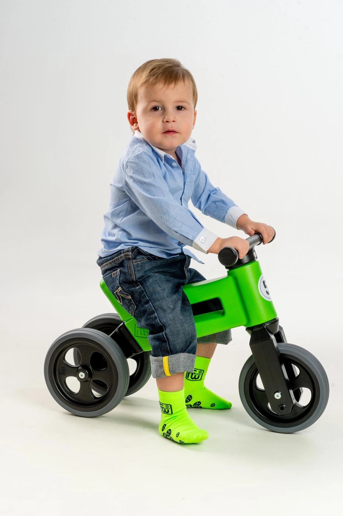 Začnite s stabilnim triciklom in kasneje preidite na dvokolesni poganjalec za trening ravnotežja. Vse potrebno je v paketu.