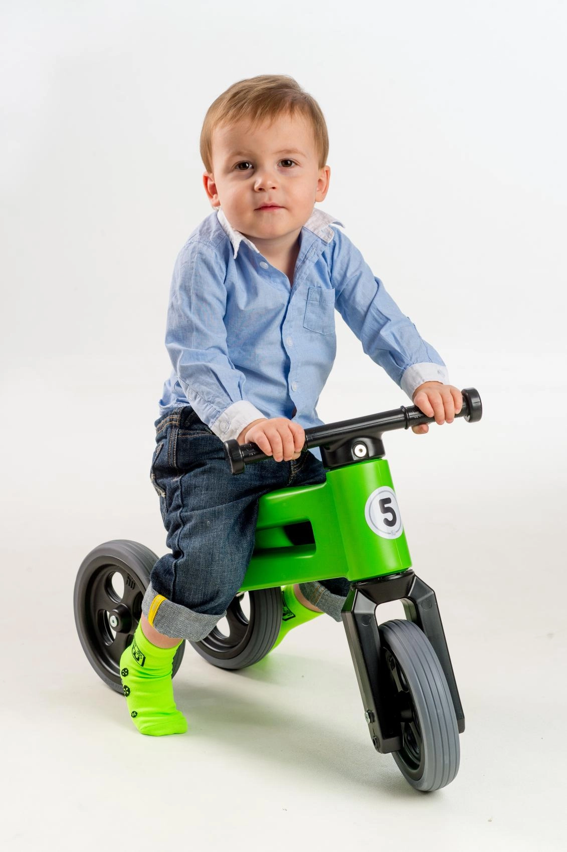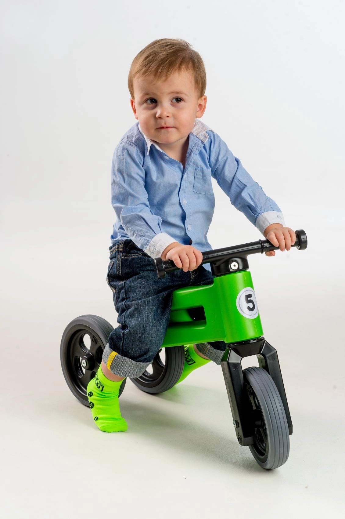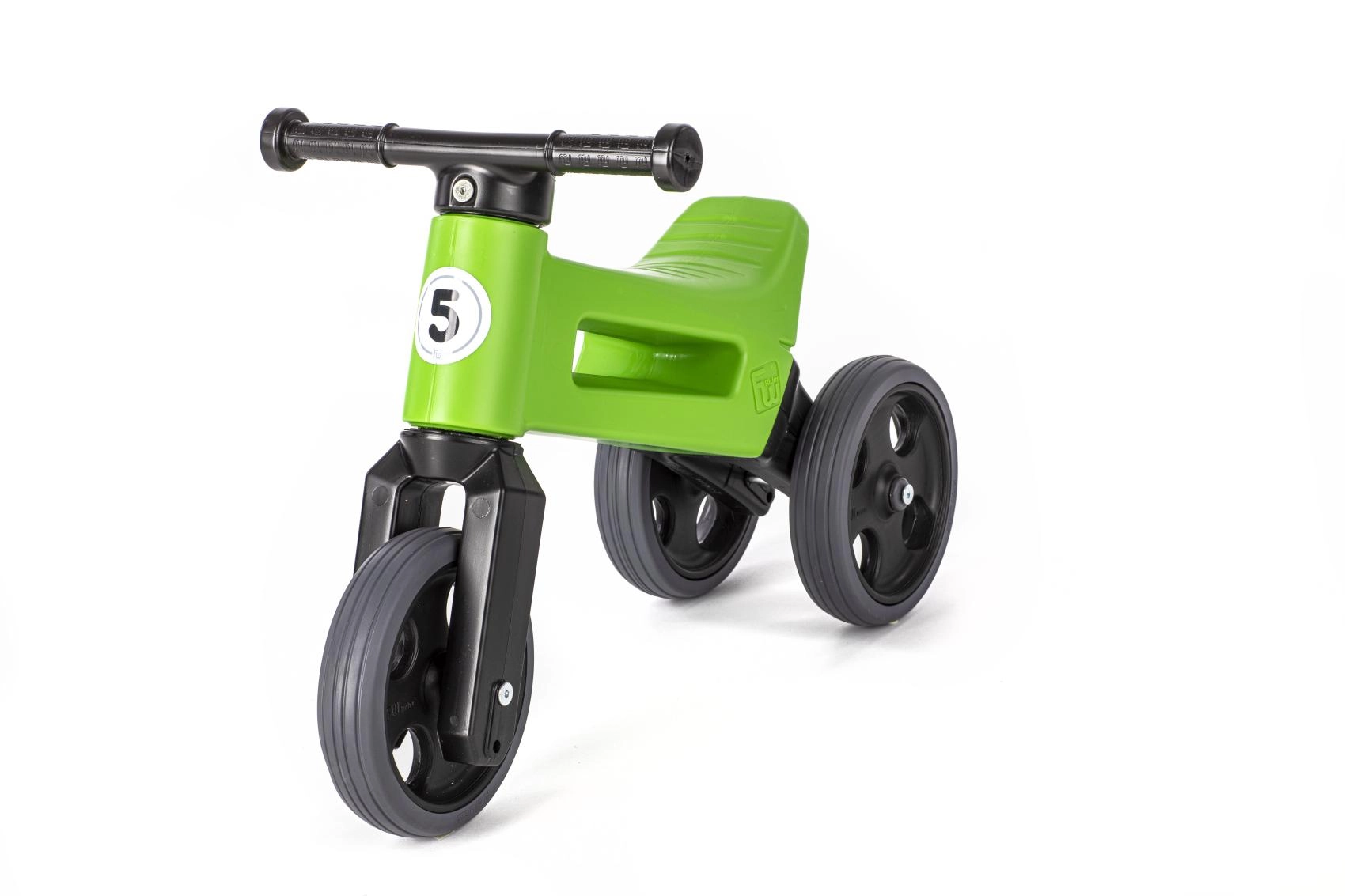 Vozite dlje brez potrebe po nakupu novega modela: sedež dvignete za 3 cm, tricikel pa zlahka spremenite v dvokolesnik za vadbo ravnotežja. Omejen zasuk vilic preprečuje prevrtenje krmila, razširjeni konci ročajev pa ščitijo drobne roke. Paket vsebuje vse potrebno za predelavo na 2 kolesi.