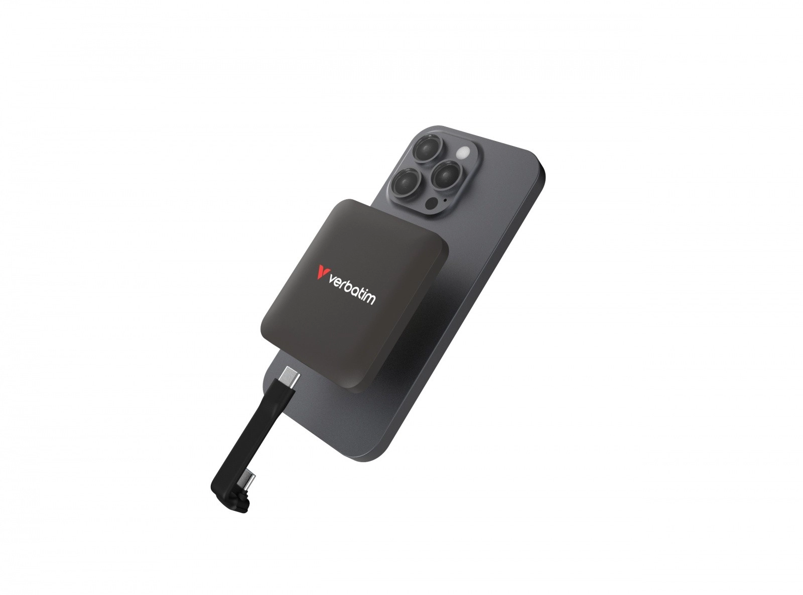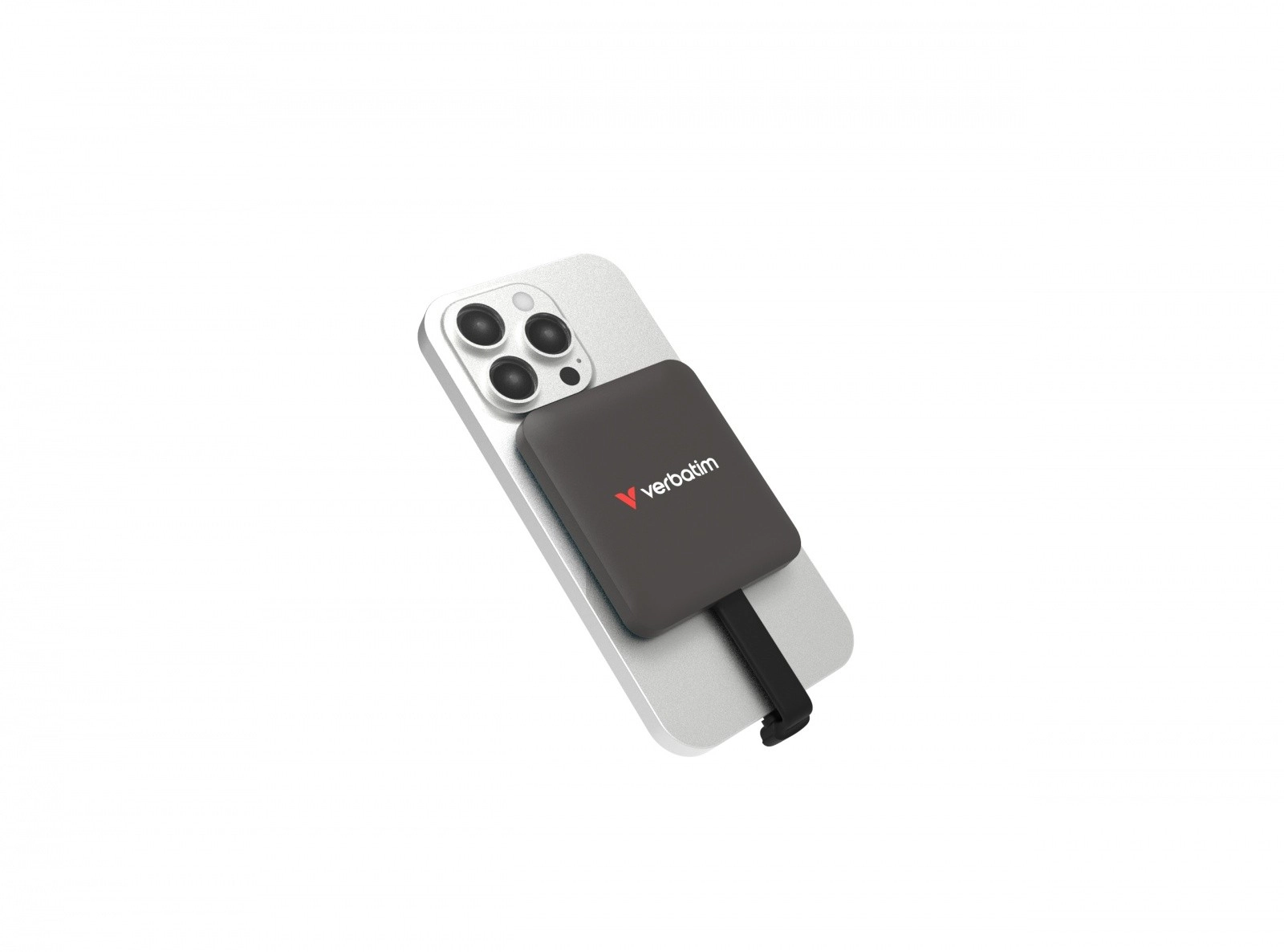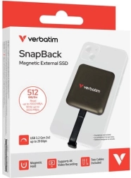 Kompaktni zunanji SSD Verbatim SnapBack Magnetic 512 GB je zasnovan za ustvarjalce, ki želijo hitro, zanesljivo in mobilno shrambo. Zahvaljujoč magnetnemu pritrjevanju MagSafe trdno drži na telefonu, podpira Apple ProRes 4K/60 in prek USB 3.2 Gen 2x2 omogoča prenos do 20 Gb/s. V paketu sta 2 kabla USB‑C za delo s telefonom in računalnikom.