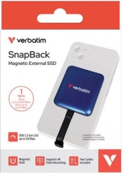 Ustvarjajte vsebine brez kompromisov. Verbatim SnapBack Magnetic SSD se pritrdi na vaš združljiv pametni telefon z močnimi magneti in omogoča takojšnjo, stabilno in varno povezavo brez nosilcev in lepljenja. Zahvaljujoč podpori Apple ProRes 4K/60 fps shranjujete posnetke neposredno na disk, zato vas ne omejuje notranji pomnilnik telefona.