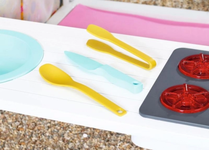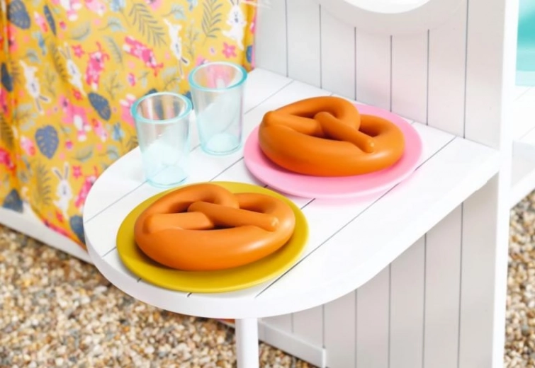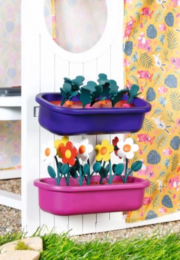 Hiška je opremljena s koriti in zelenjavnim vrtičkom za nabiranje sestavin za domišljijske večerje. Otroci lahko pripravljajo hrano na štedilniku in pogrnejo mizo za svoje punčke ter postrežejo solate in preste.