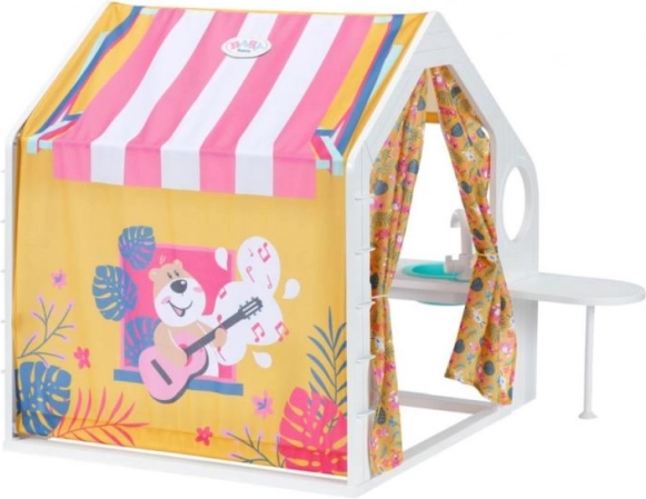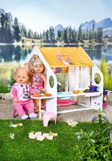Z barvanimi stenami in podrobnimi dekoracijami hiška otrokom omogoča doživeti razkošno glamping izkušnjo s punčkami BABY born.
