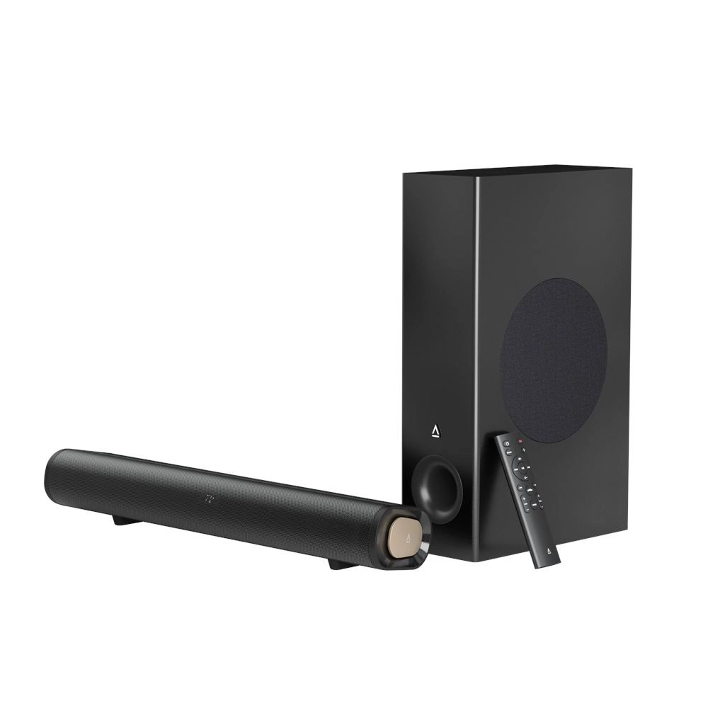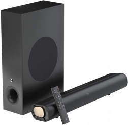 Raznolika povezljivost olajša vključitev v vaš sistem: prek HDMI ARC se zvok iz TV prenaša tekoče, USB pokriva predvajanje z računalnika, Bluetooth pa hitro seznani telefon ali tablico. V kompletu je tudi daljinski upravljalnik za udobno upravljanje glasnosti in načinov.
