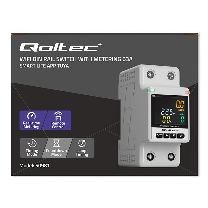 Pametni enofazni števec električne energije z Wi‑Fi in aplikacijo TUYA / Smart Life omogoča spremljanje porabe energije v realnem času, merjenje napetosti, toka, moči, energije (kWh) in uhajavnega toka ter hkrati ročno in na daljavo upravljati napajanje. Zahvaljujoč preglednemu LCD-zaslonu, zgodovini meritev in samodejnim zaščitam z lahkoto optimizirate stroške in zaščitite inštalacijo.