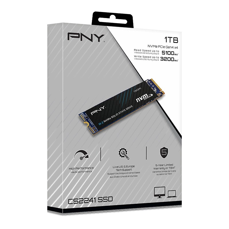 PNY CS2241 je sodoben NVMe SSD, namenjen namiznim računalnikom in prenosnikom s podporo PCIe 4.0. Ponuja bistveno višje hitrosti branja in pisanja v primerjavi s SATA SSD, zato skrajša nalaganje sistema in programov ter izboljša skupno odzivnost naprave.