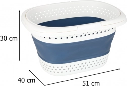 Ta velika, a po zlaganju kompaktna košara za perilo prinaša pametno rešitev za vsakodnevno razvrščanje in prenašanje perila. Fleksibilen srednji del iz vzdržljivega silikona omogoča hitro zlaganje v ravno obliko, medtem ko čvrst rob in dno ohranjata obliko pri uporabi. Zahvaljujoč perforiranim stenam zrak kroži in perilo ne postane zatohlo.