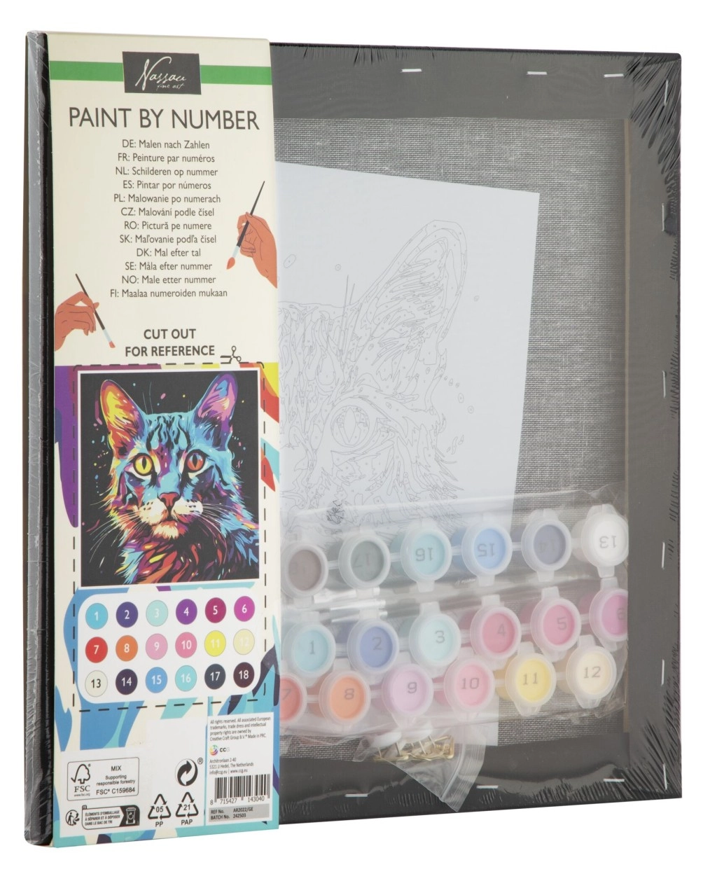 Ta komplet za slikanje po številkah je idealna izbira za otroke in odrasle, ki imajo radi živali in si želijo sprostitve ob ustvarjalni dejavnosti. Črno platno motivu mačke doda izrazit kontrast in moderen videz, zaradi česar končna slika izstopa v vsakem interierju.