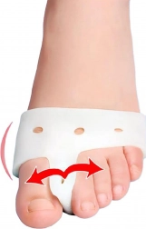 Praktičen silikonski pripomoček za udobje pri hoji in vsakodnevnem nošenju obutve. Ločevalnik nežno razširi prostor med palcem in drugim prstom ter tako prispeva k pravilnemu položaju prstov in zmanjšuje pritisk na sklep palca. Mehak, prožen silikon se prilagodi obliki stopala in nudi takojšnje olajšanje pred trenjem in otiščanci.