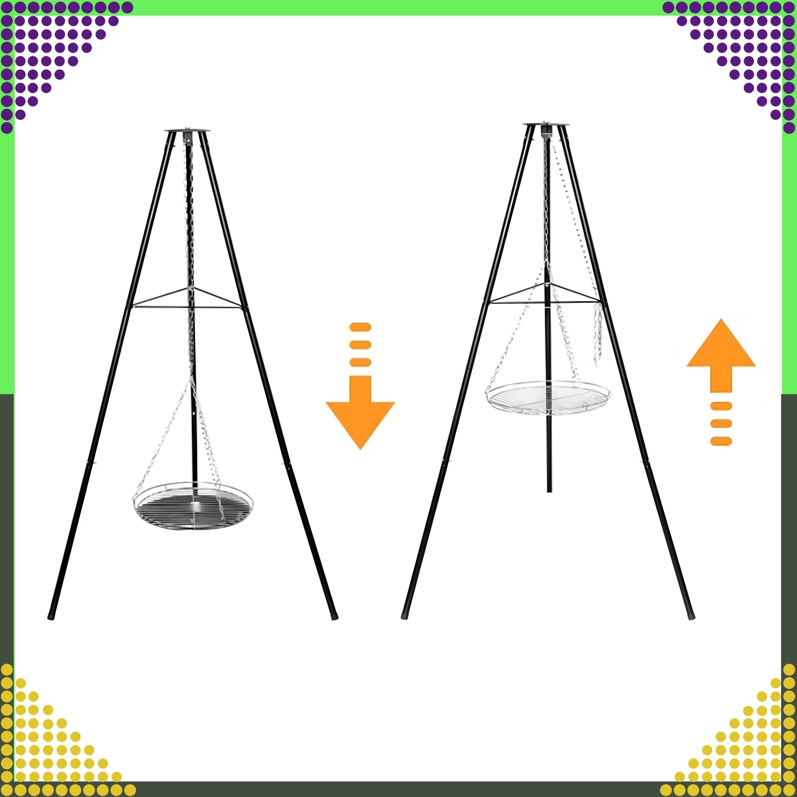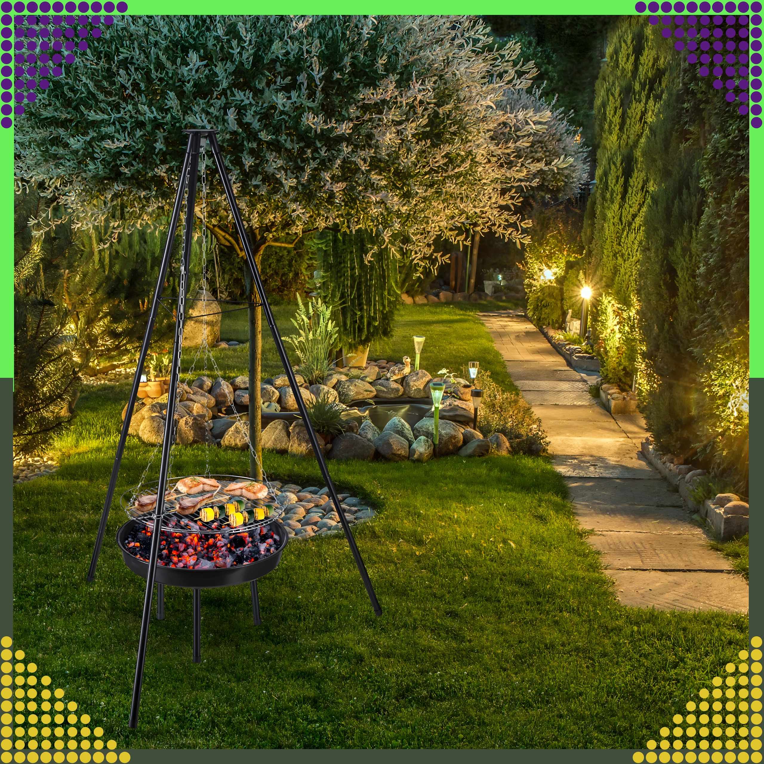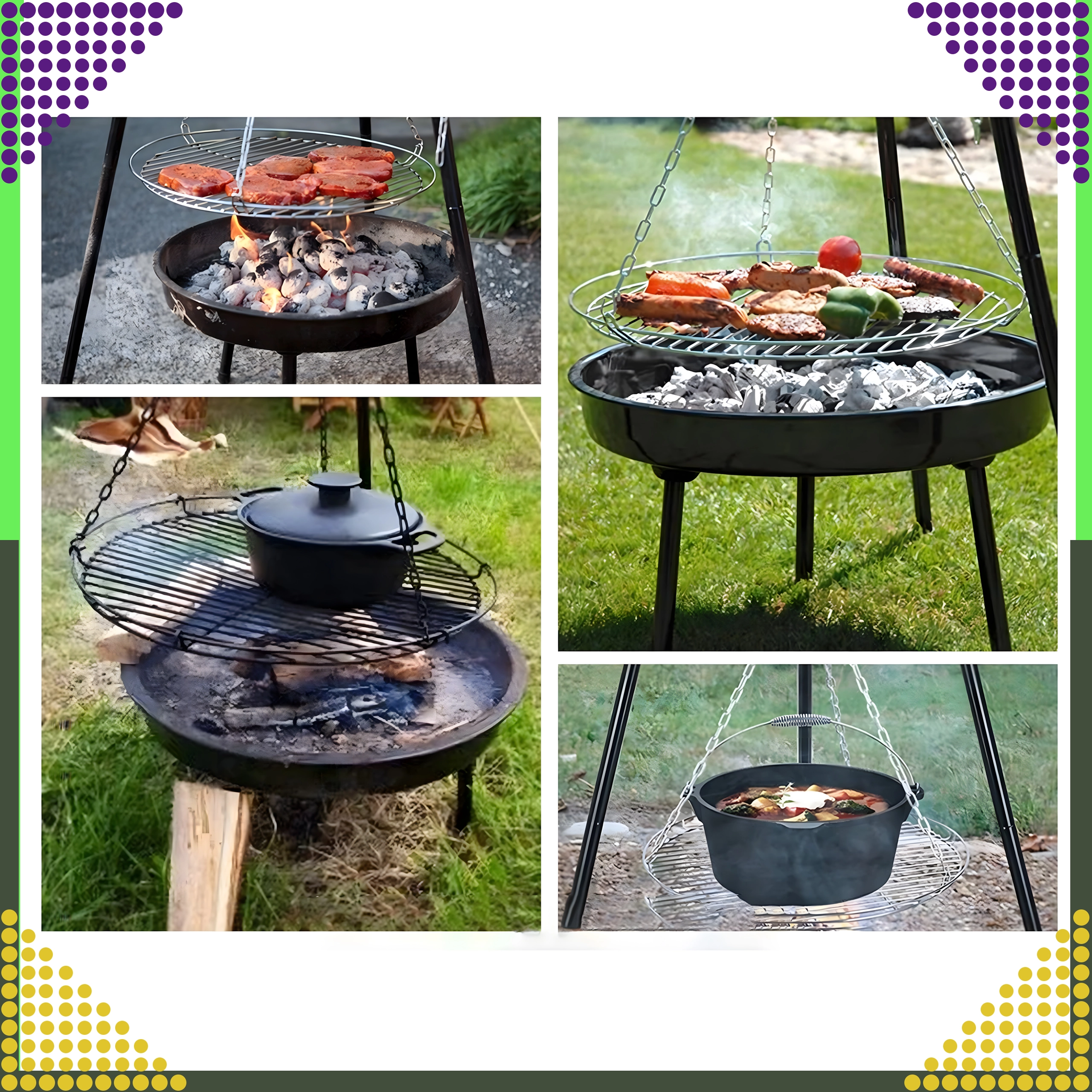 Ta eleganten in vzdržljiv vrtni trinožni žar je odlična rešitev za vse, ki želijo peči nad odprtim ognjem, a nimajo stalnega mesta za kurišče. Višinsko nastavljiva rešetka (Ø 50 cm) z obešanjem na verigah omogoča natančen nadzor temperature in enakomerno zapečenje mesa ter zelenjave. Stabilna trinožna konstrukcija iz prašno lakiranega jekla je odporna na visoke temperature in enostavna za vzdrževanje.