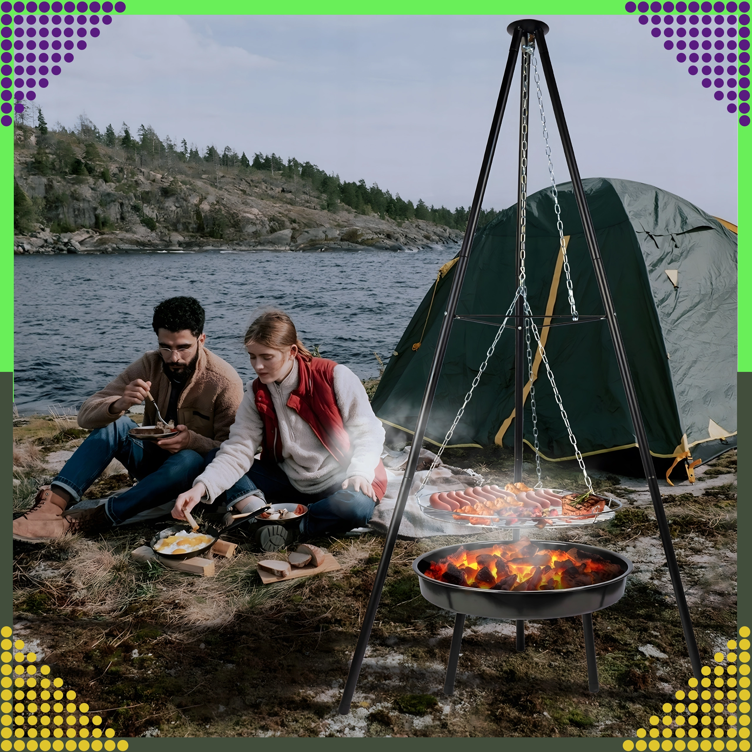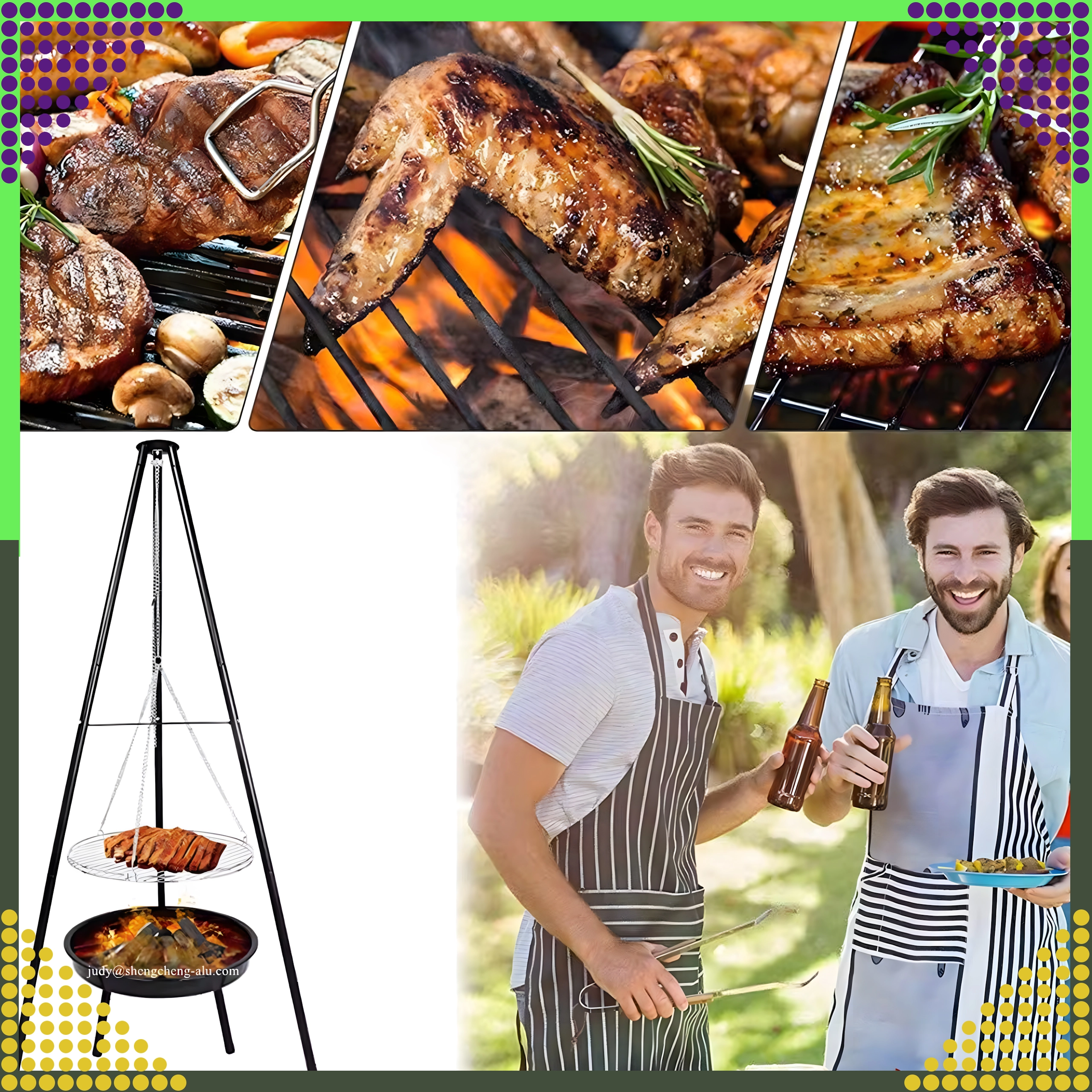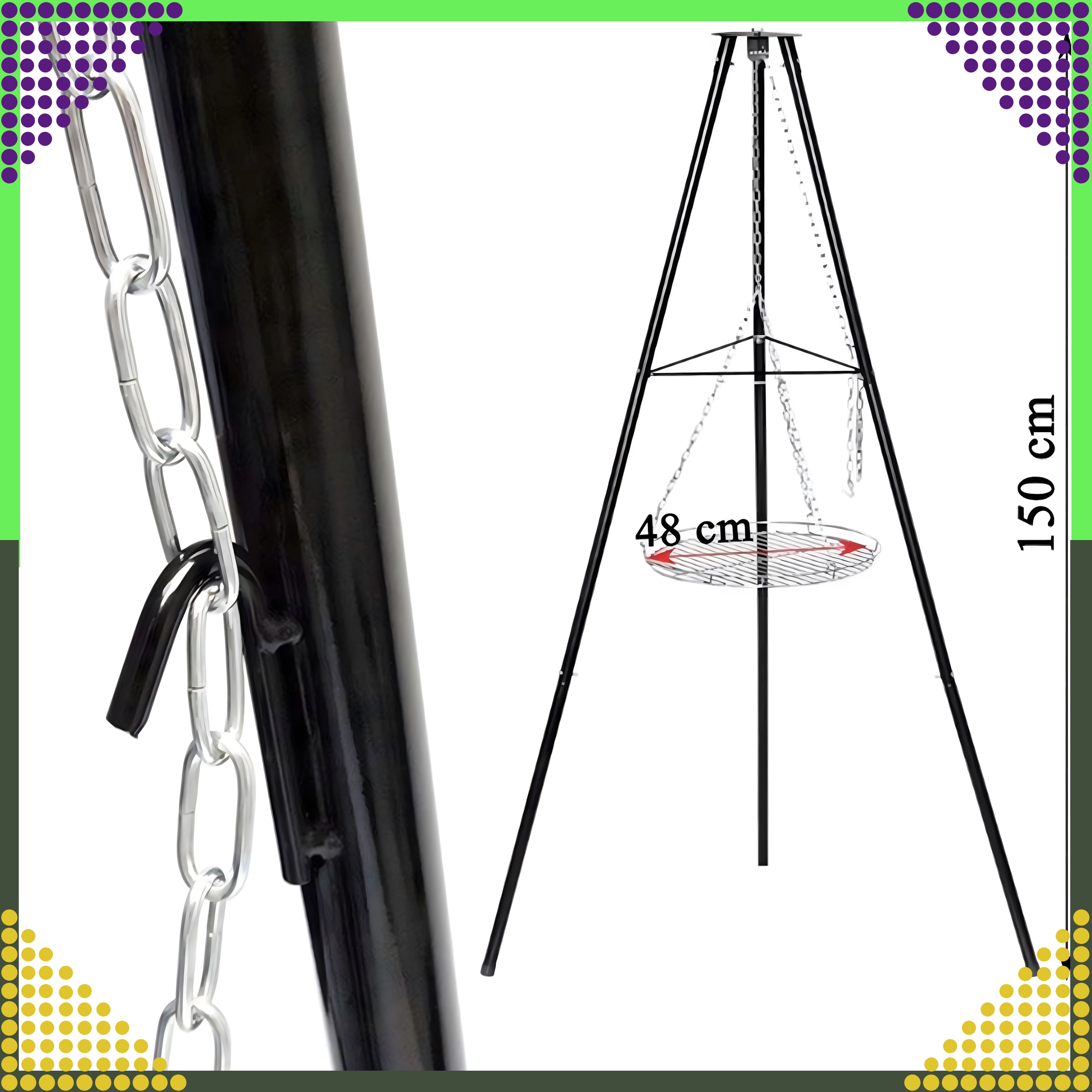 Ta eleganten in vzdržljiv vrtni trinožni žar je odlična rešitev za vse, ki želijo peči nad odprtim ognjem, a nimajo stalnega mesta za kurišče. Višinsko nastavljiva rešetka (Ø 50 cm) z obešanjem na verigah omogoča natančen nadzor temperature in enakomerno zapečenje mesa ter zelenjave. Stabilna trinožna konstrukcija iz prašno lakiranega jekla je odporna na visoke temperature in enostavna za vzdrževanje.