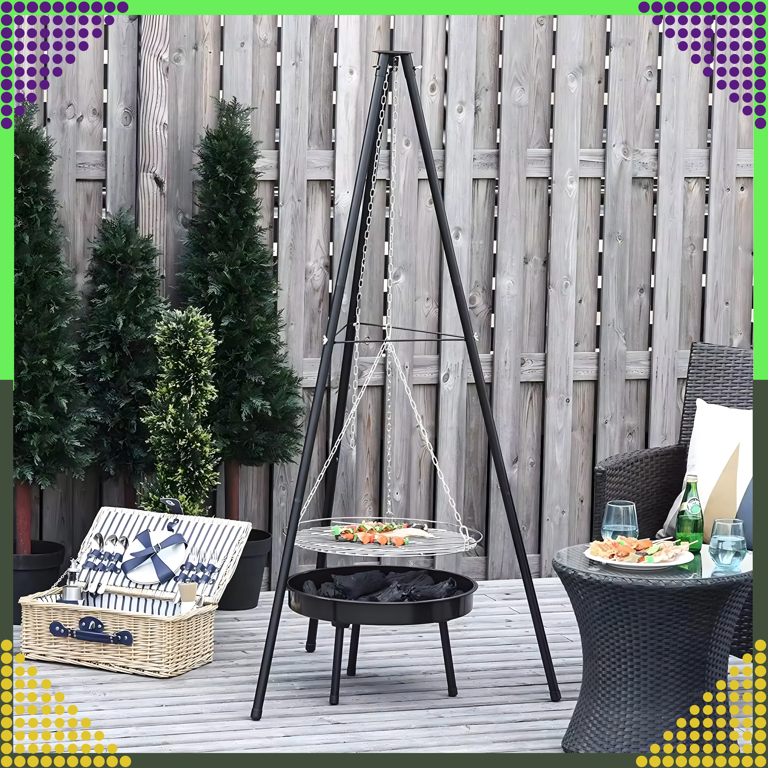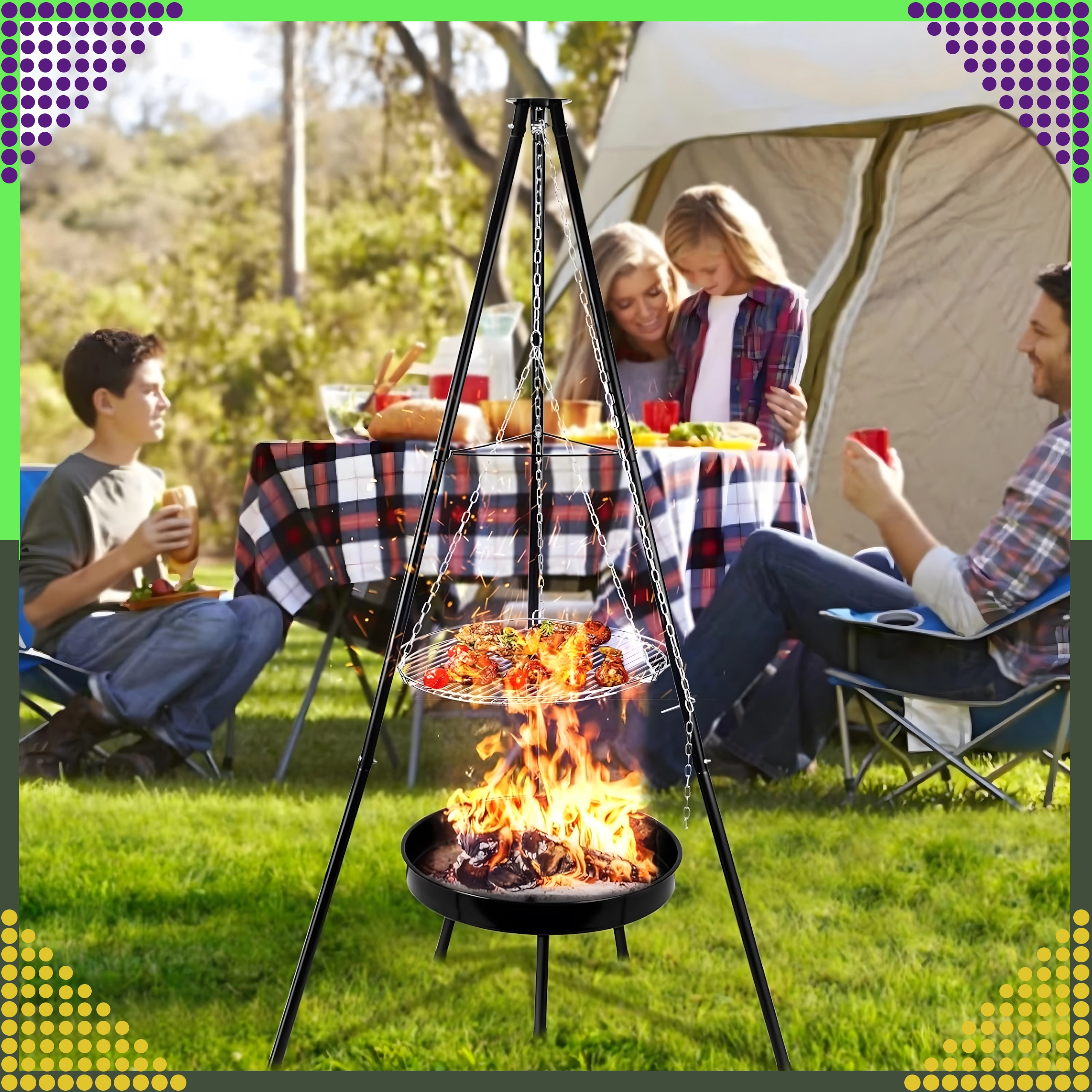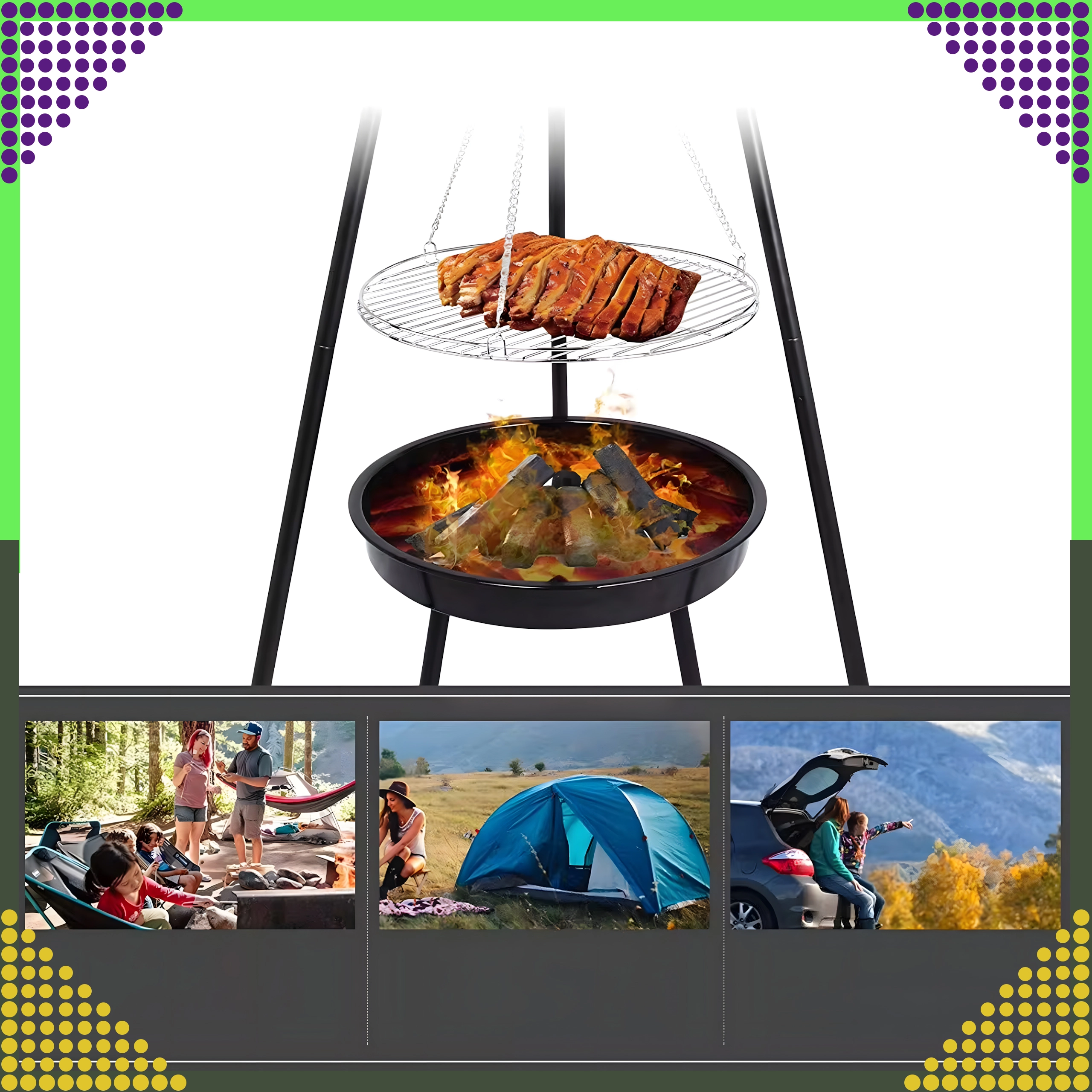 Trinožna konstrukcija iz prašno lakiranega jekla je odporna na visoke temperature in zagotavlja varno pečenje na vrtu ali v kampu.