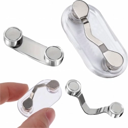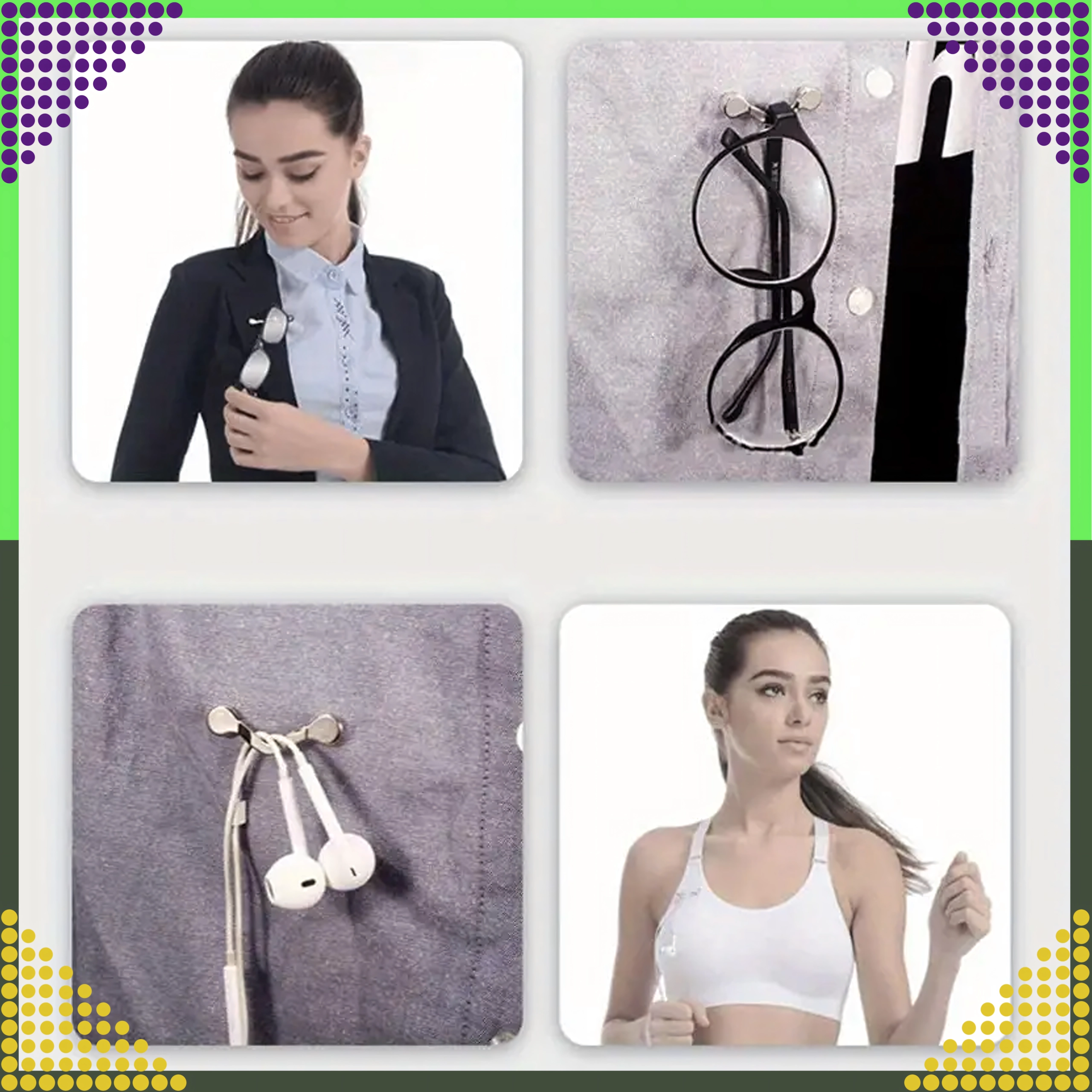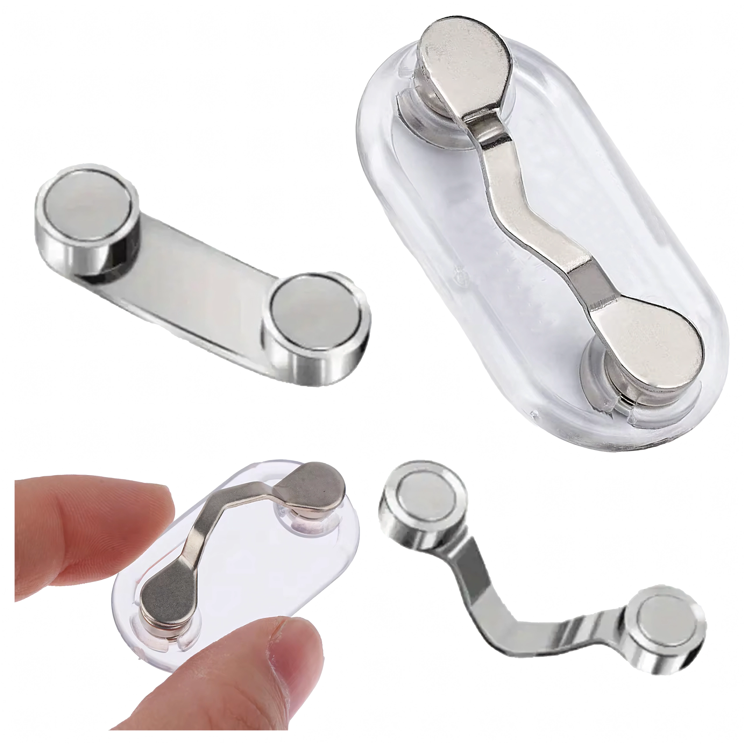 Praktično magnetno držalo je elegantna rešitev, kako imeti očala, slušalke ali identifikator vedno pri roki. Par močnih magnetov se spoji skozi tkanino in ustvari stabilen oprijem brez poškodb oblačil. Kovinska izvedba s prozornim podlagom deluje diskretno in je primerna za pisarno, potovanja in šport.