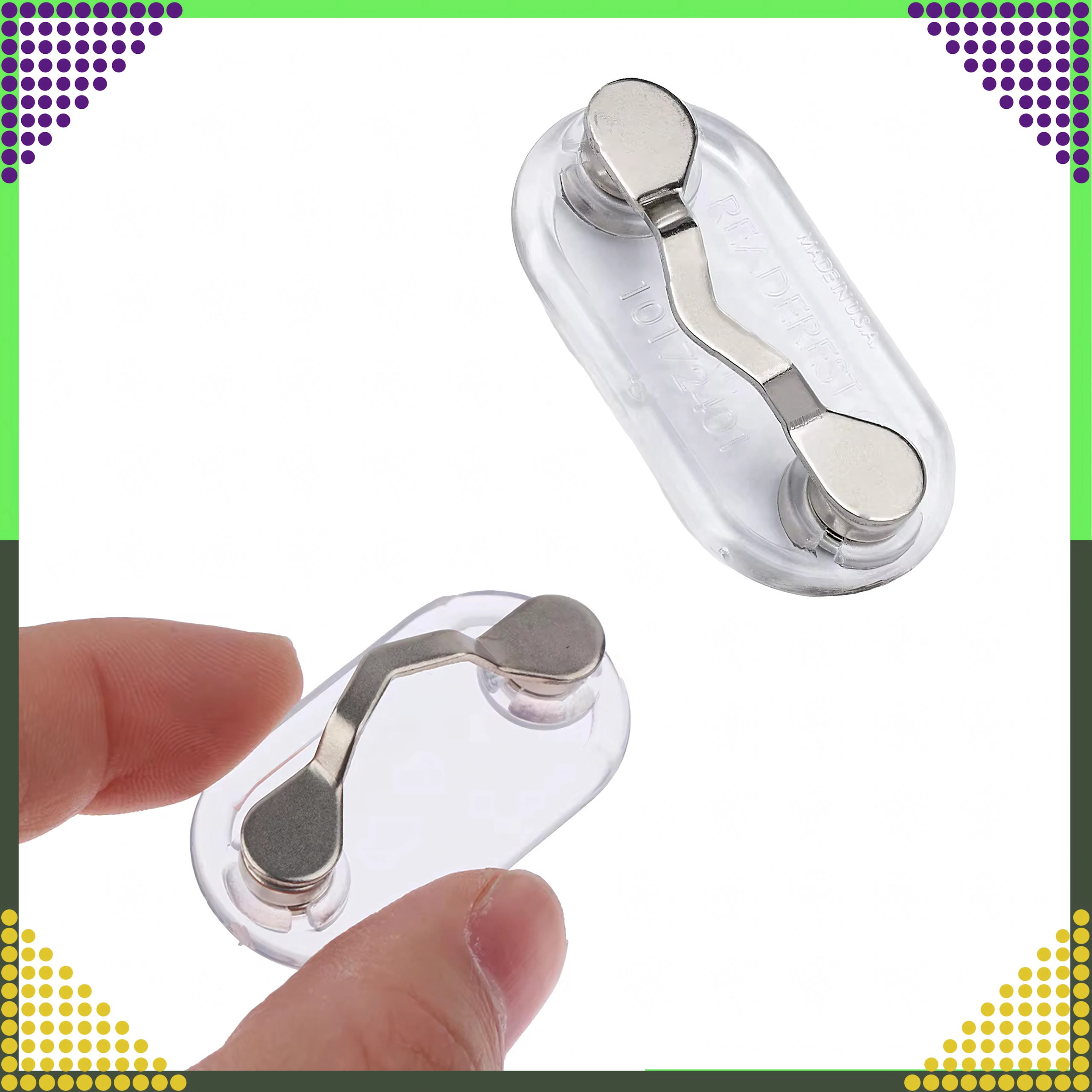Dvojni magnet trdno spoji spon skozi tkanino in drži dodatke na mestu tudi med gibanjem – brez igel in brez poškodb tekstila.