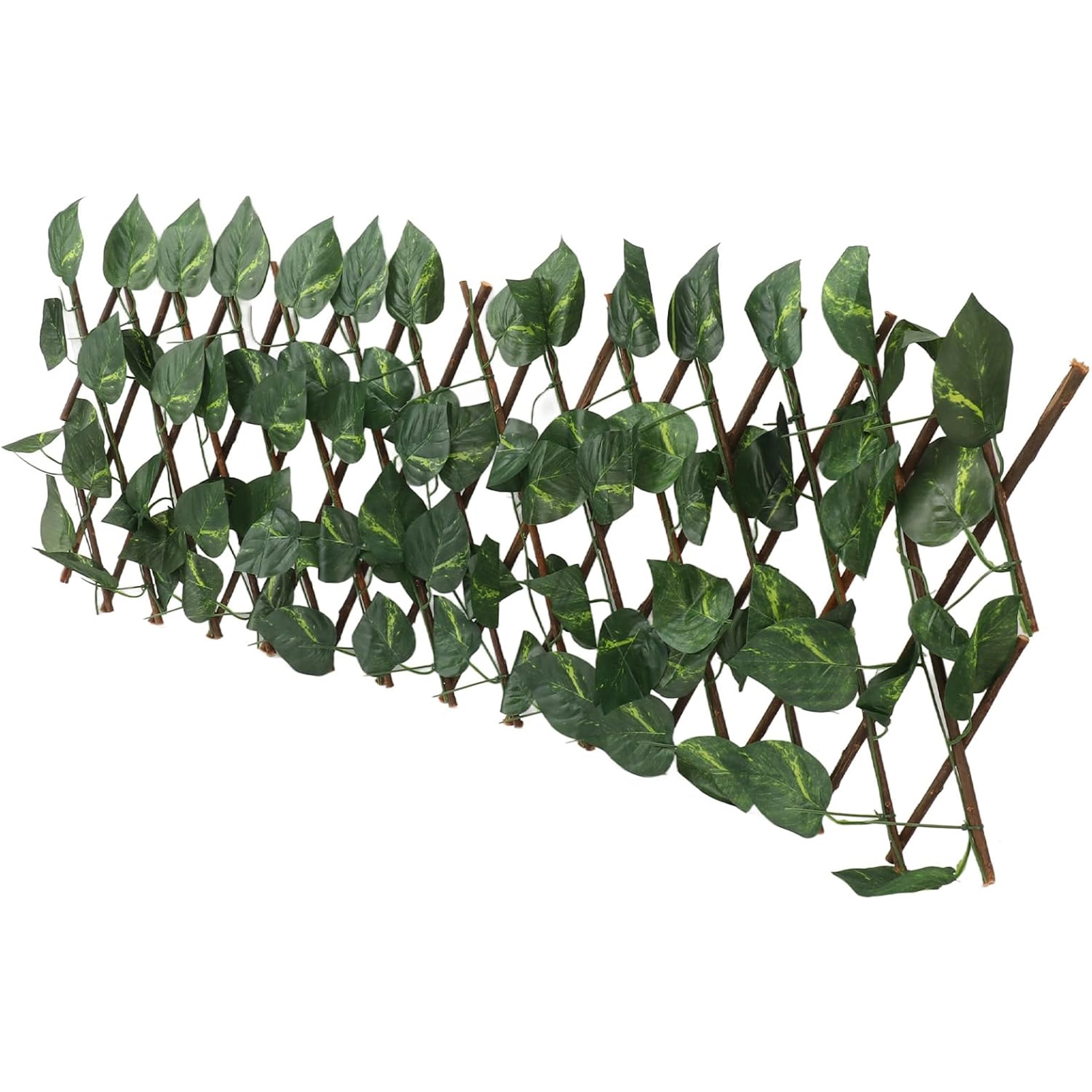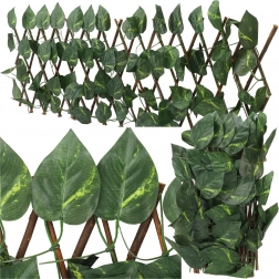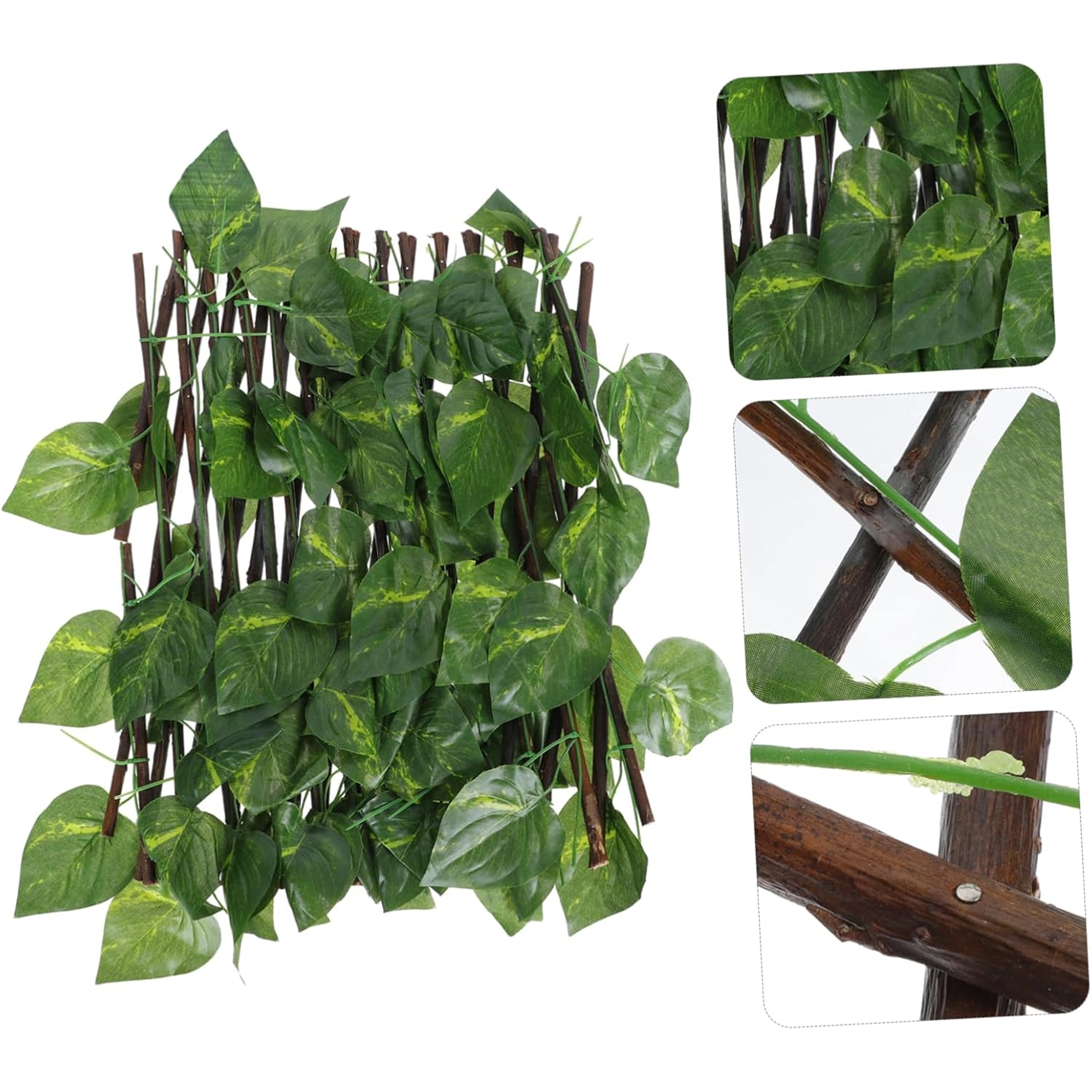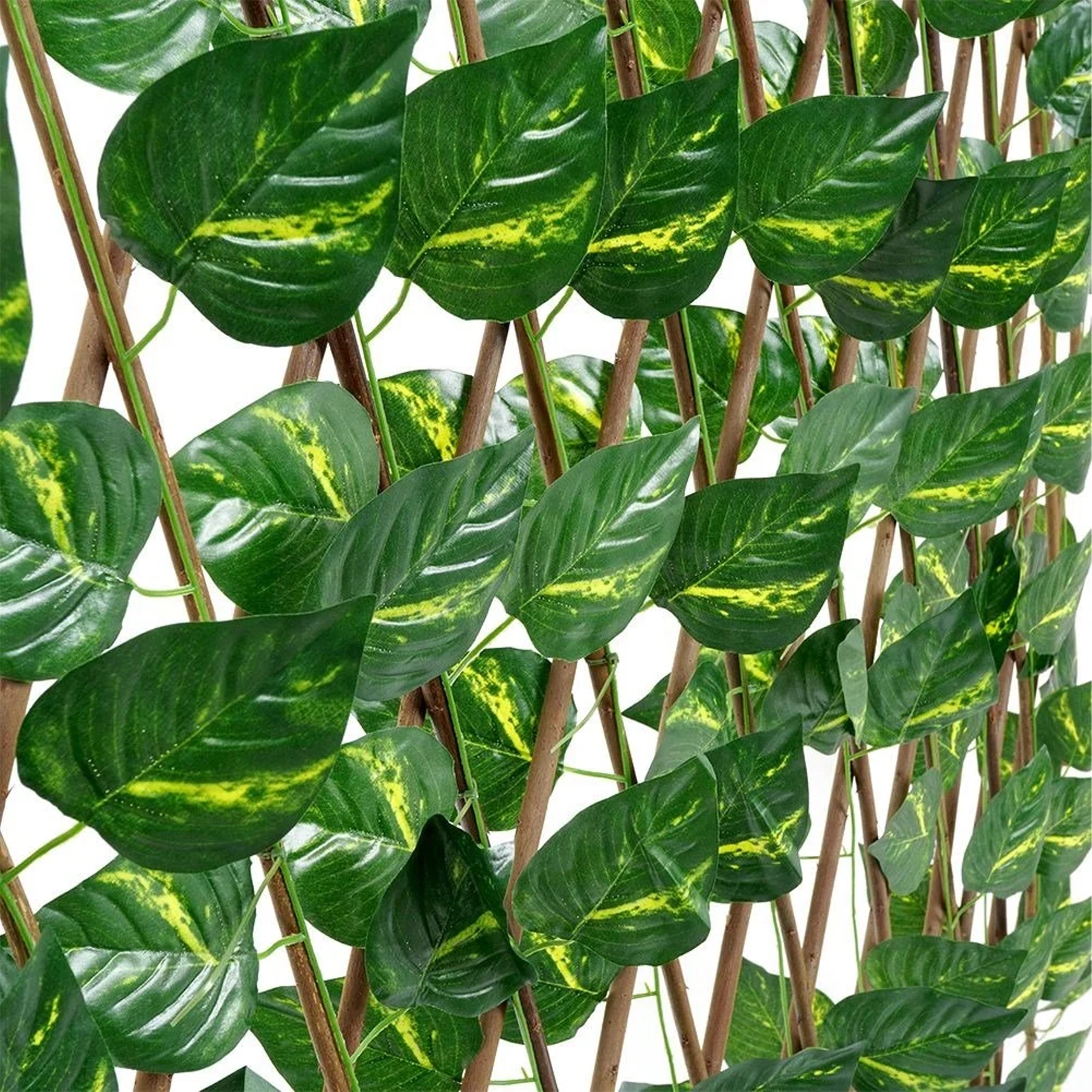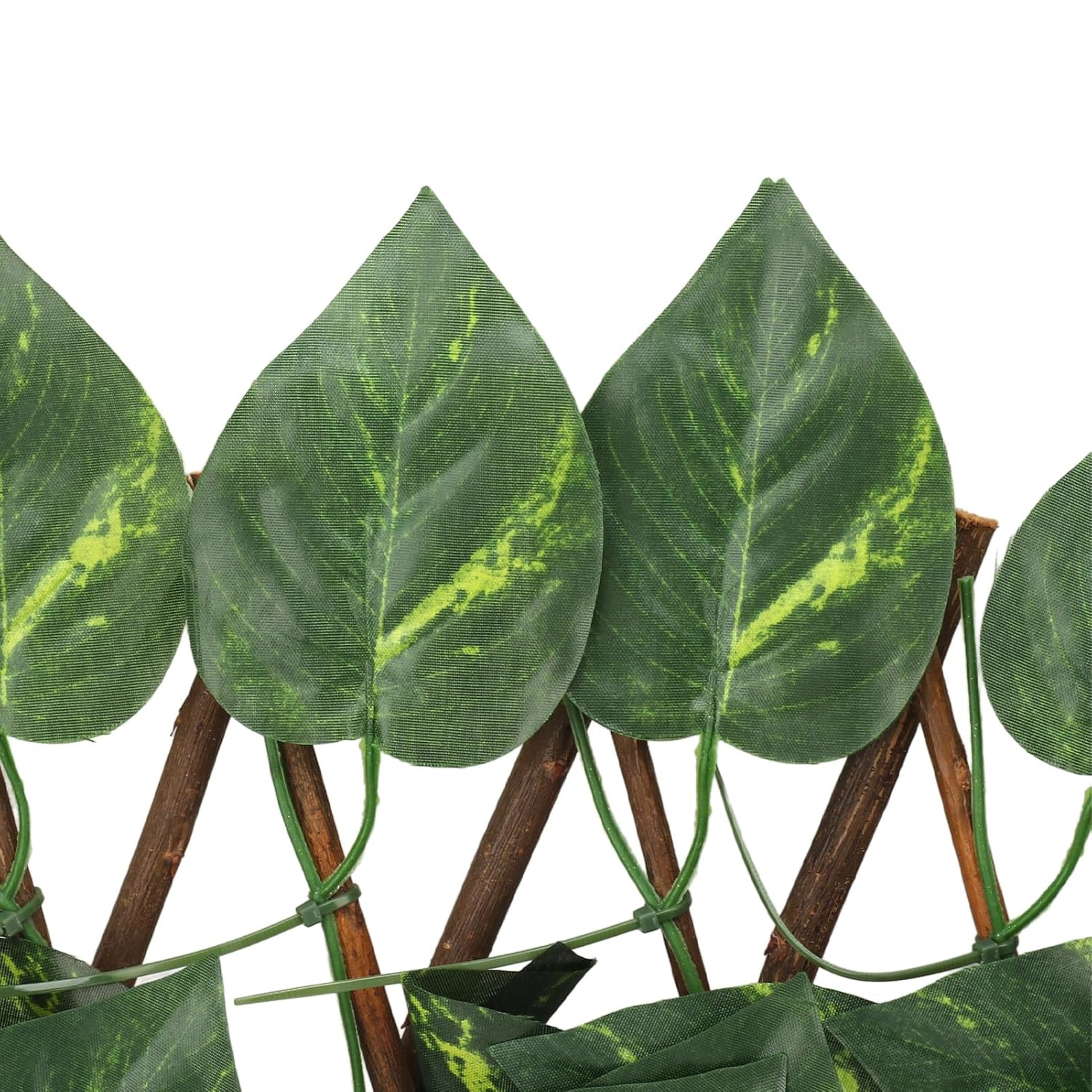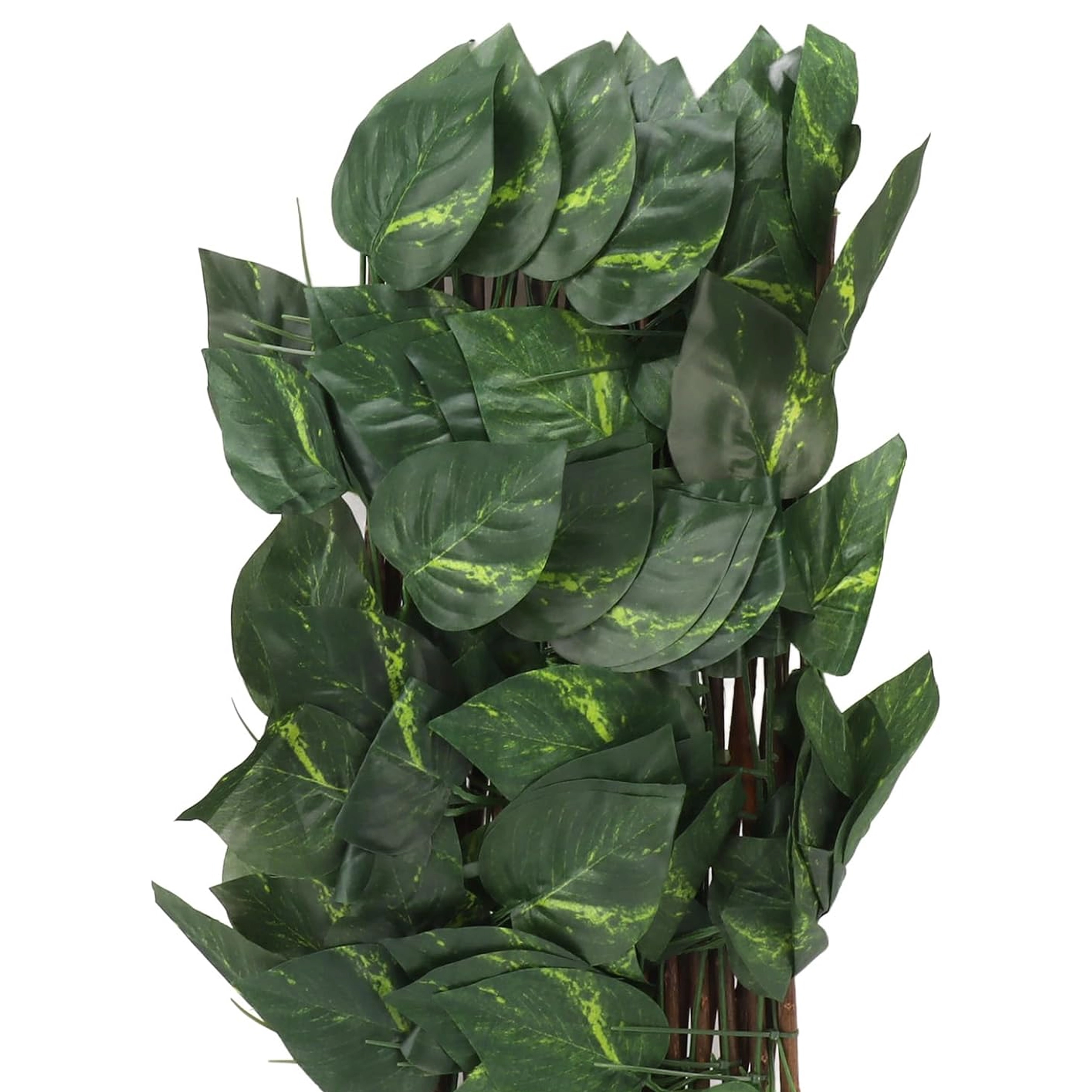 Ta dekorativna mreža z gostimi umetnimi listi na leseni križni rešetki služi kot elegantna pregrada za balkone, terase, pergole in ograje. Realistični, zimzeleni listi zagotavljajo prijetno zakritje in hkrati prepuščajo zrak – idealno za zasebnost brez vzdrževanja.