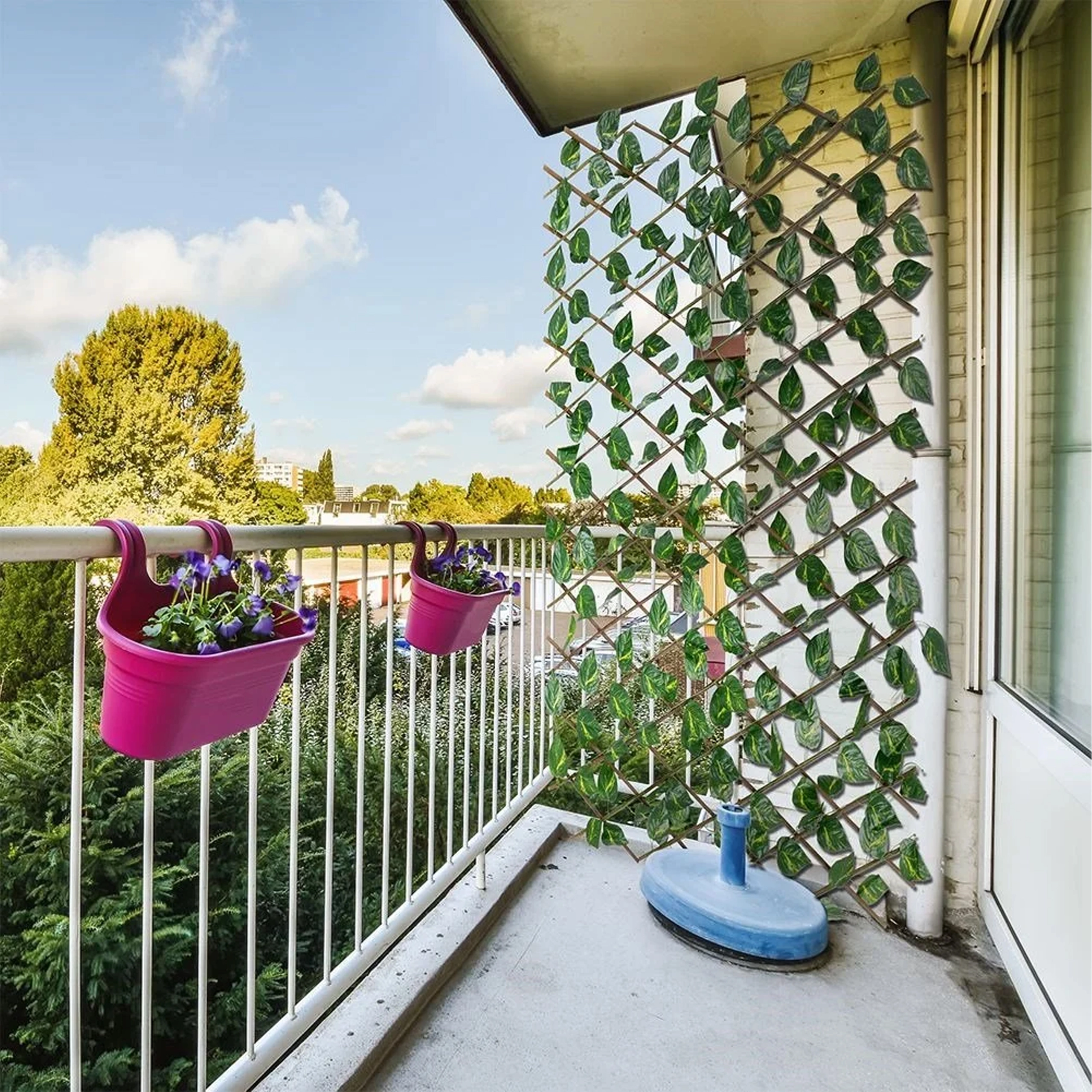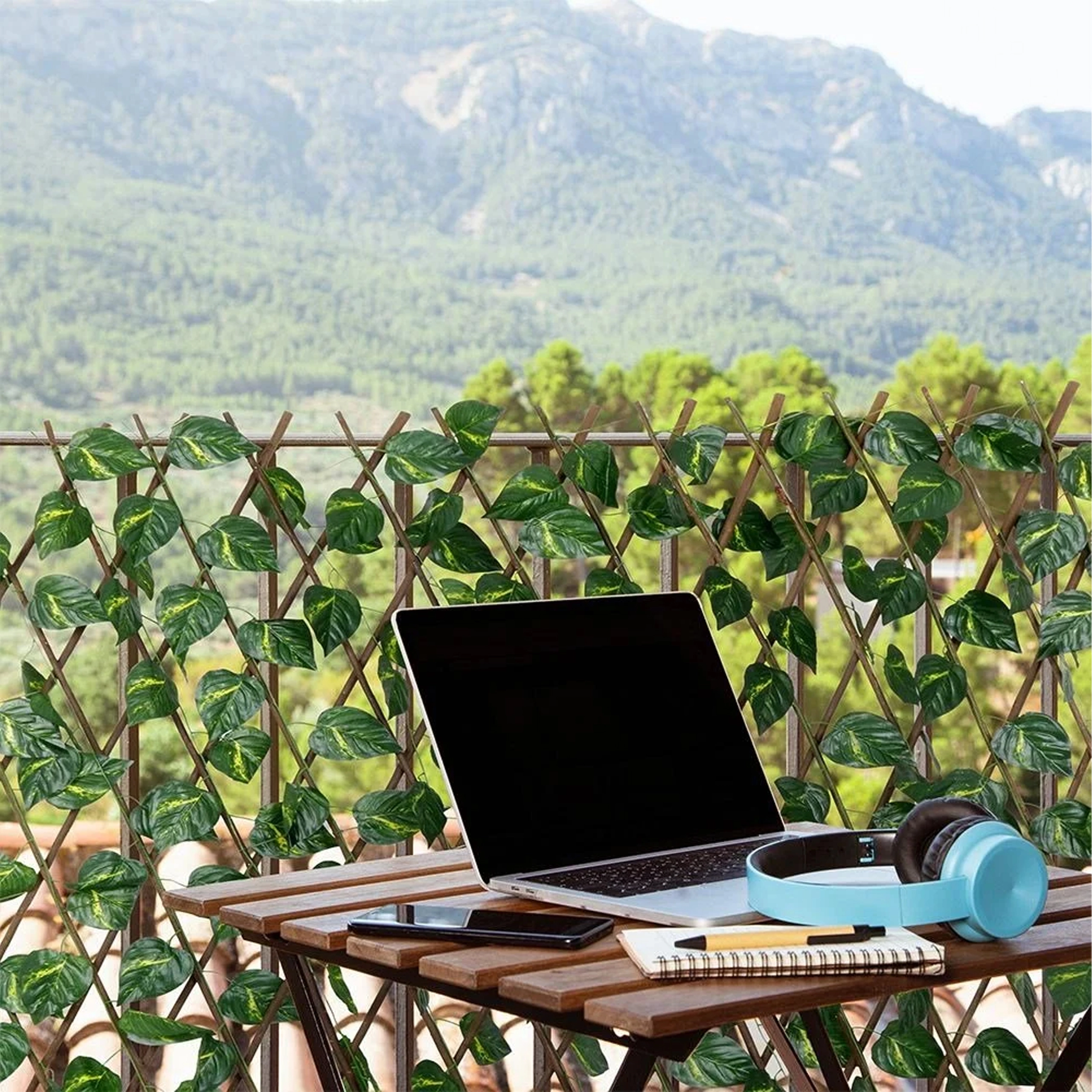 Zahvaljujoč raztegljivemu akordeonskemu okvirju preprosto nastavite širino in višino po potrebi. Mrežo lahko pritrdite na steno, ograjo ali ograjevalo in v hipu ustvarite zeleno ozadje za počitek, delo ali druženje s prijatelji.